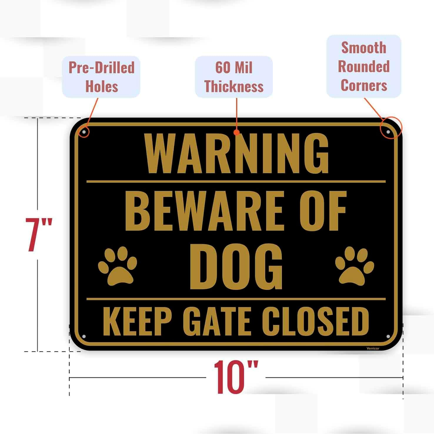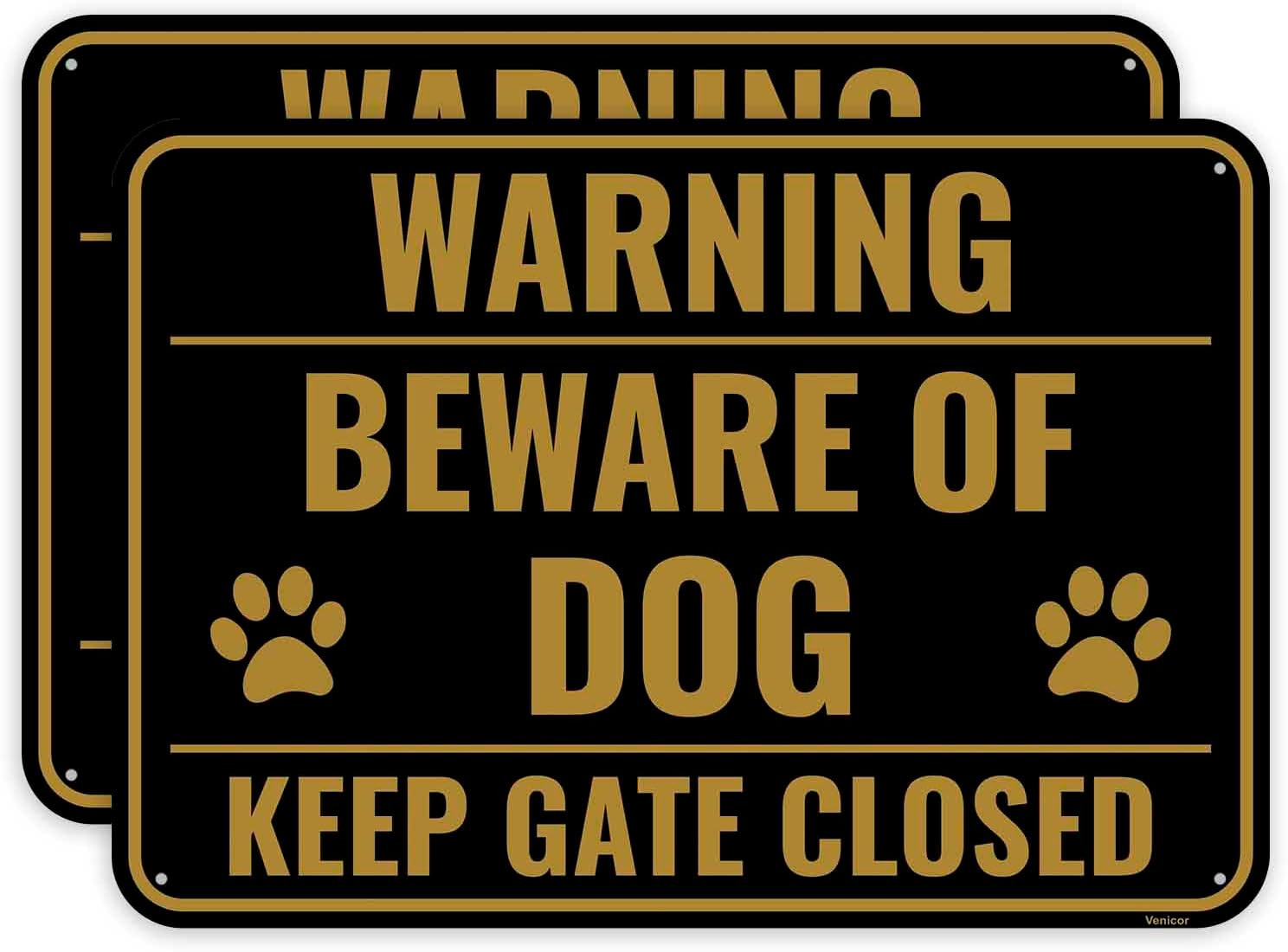 2PC Funny Beware of Dog Sign, 10 x 7 Inches - Aluminum - Cute Keep Gate Close...