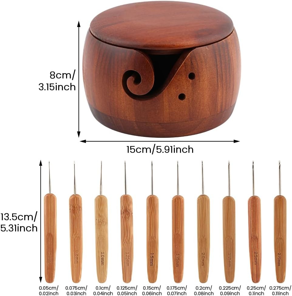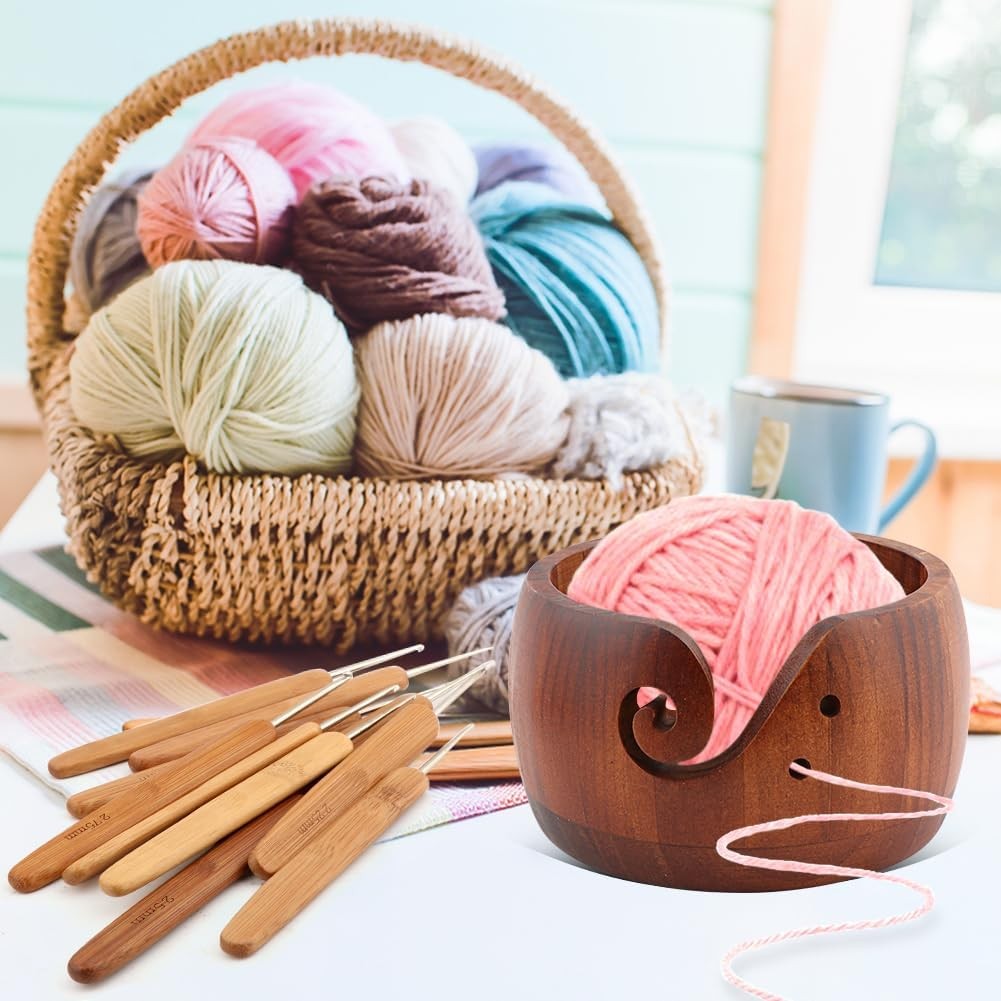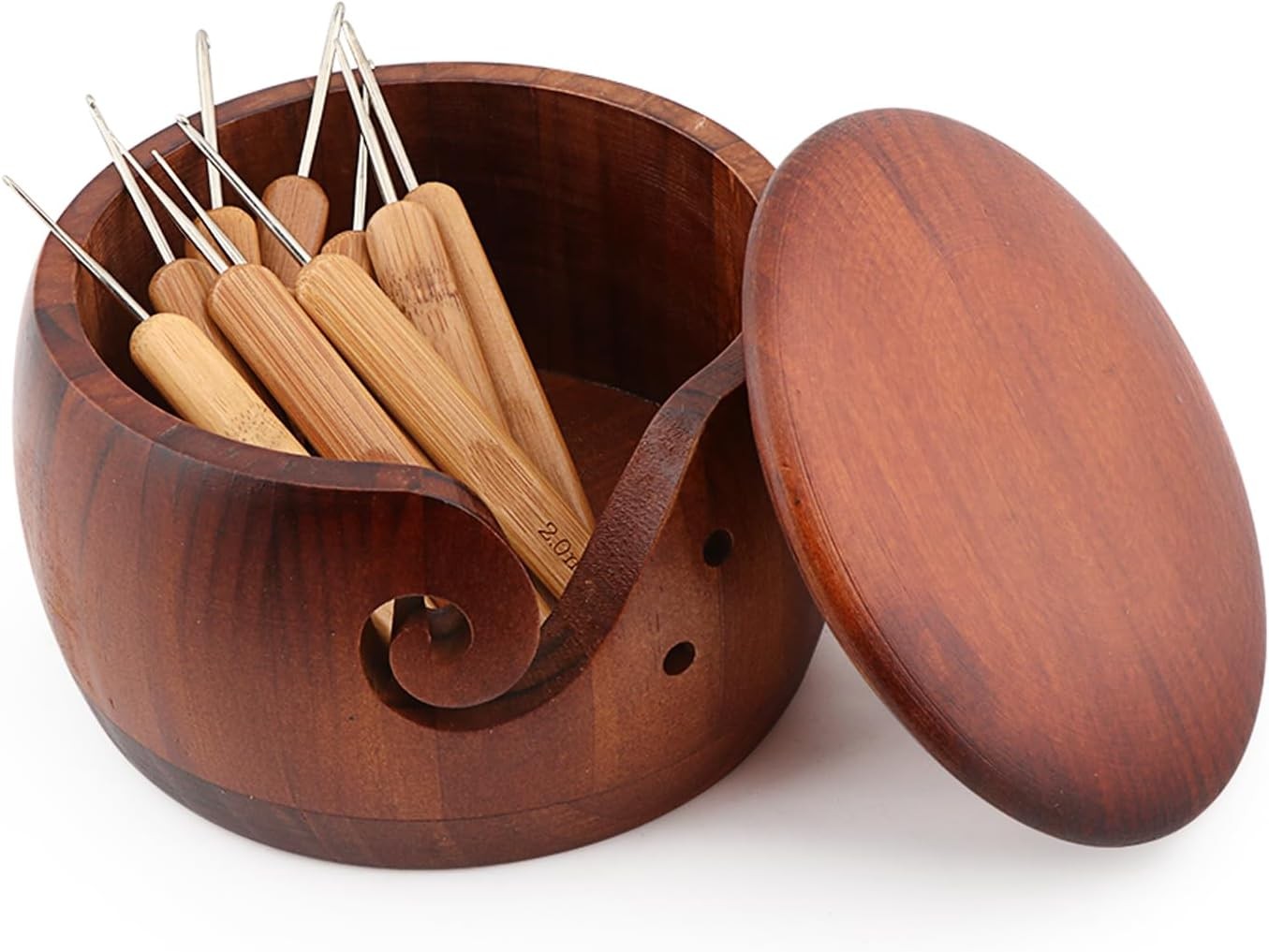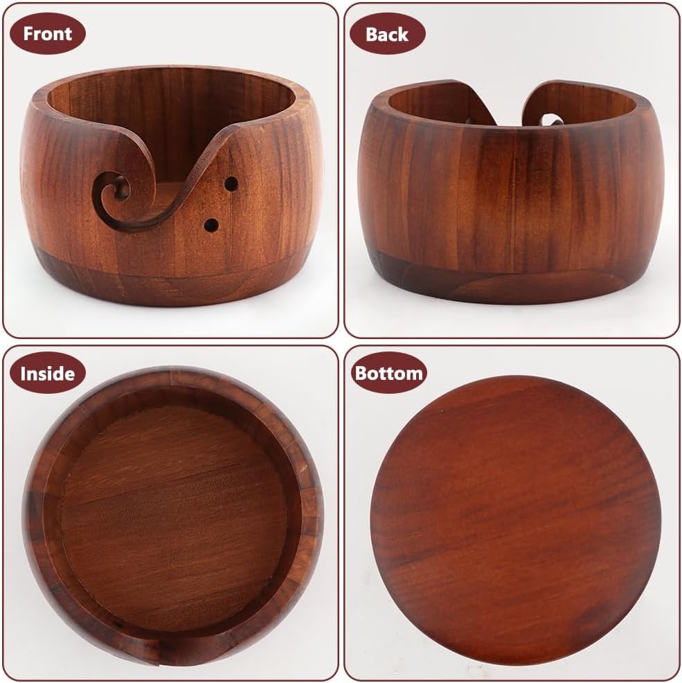 Multifunctional Wooden Yarn Bowl with Holes Storage,Crochet Hooks,DIY Natural...