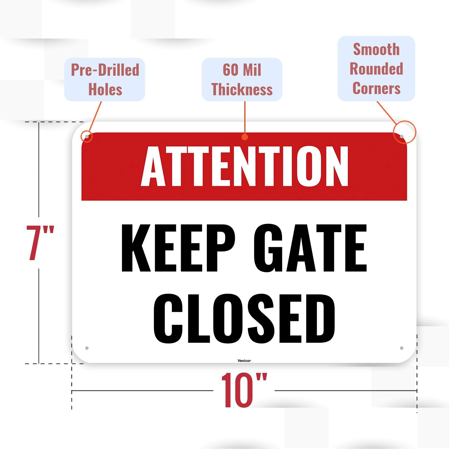 2PC Keep Gate Closed Sign, 10 x 7 Inches - Aluminum - Please Close Gate Dog Sign