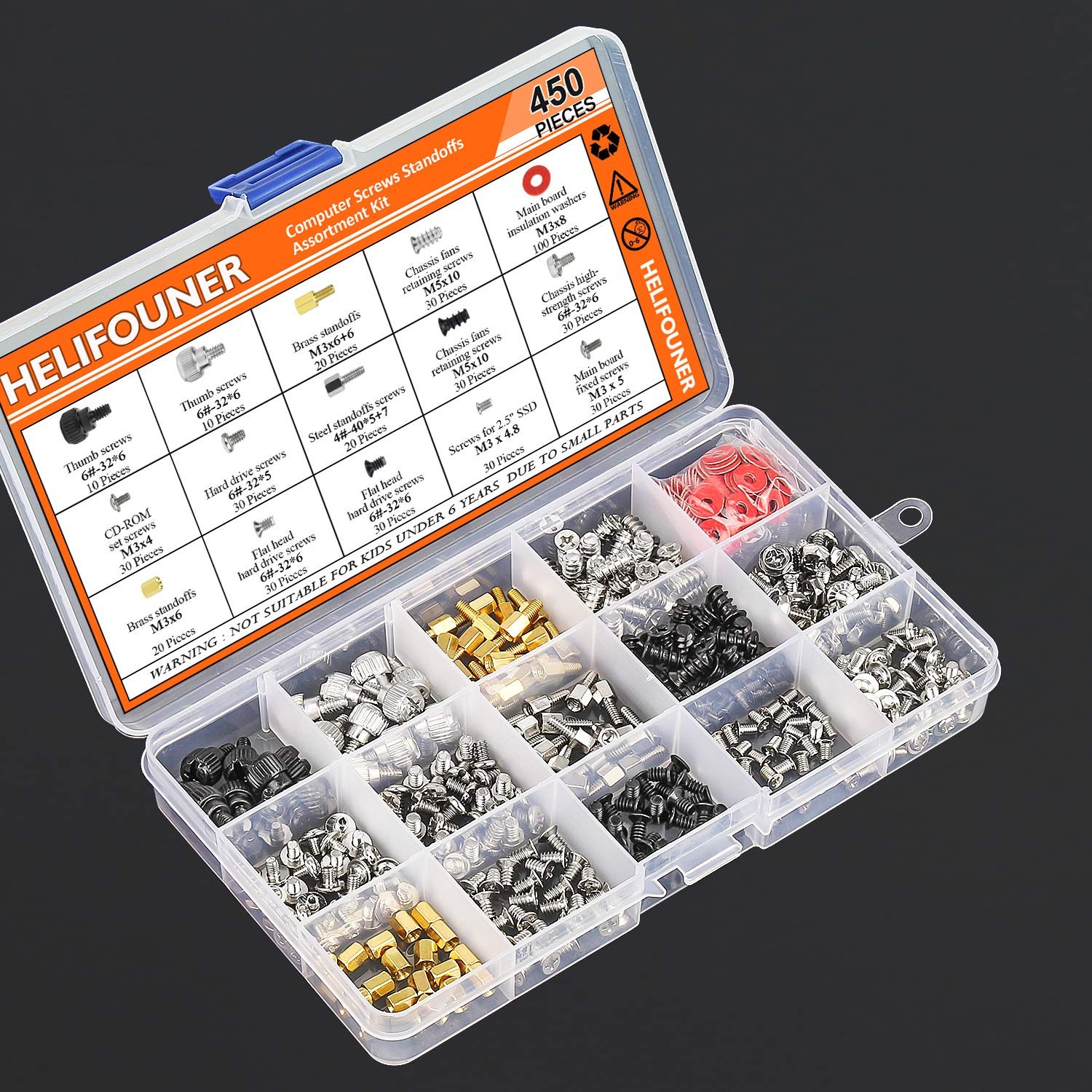 450 Pieces Computer Standoffs Spacer Screws Assortment Kit for Hard Drive Com...