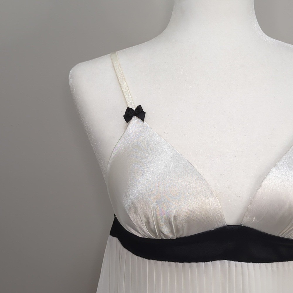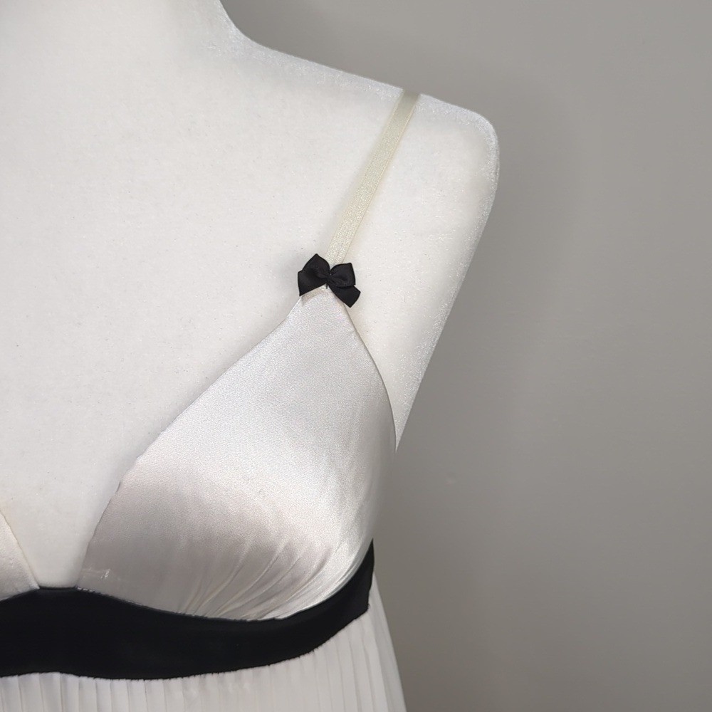 как выглядит Y2K Linea Donatella White Black Babydoll Top Sweetheart Pleated S Sheer Coquette фото