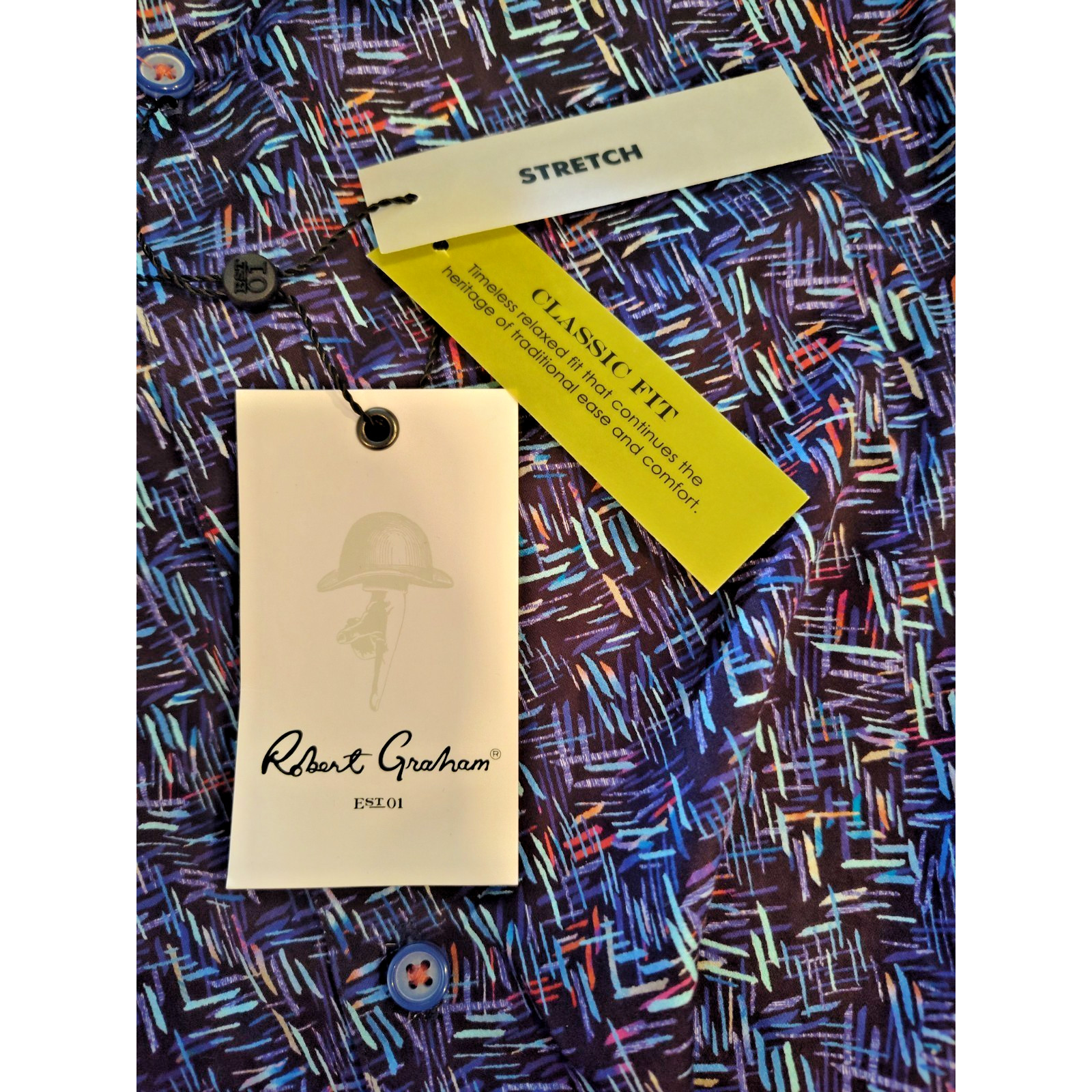 как выглядит Robert Graham Back Bay Blue Abstract Men