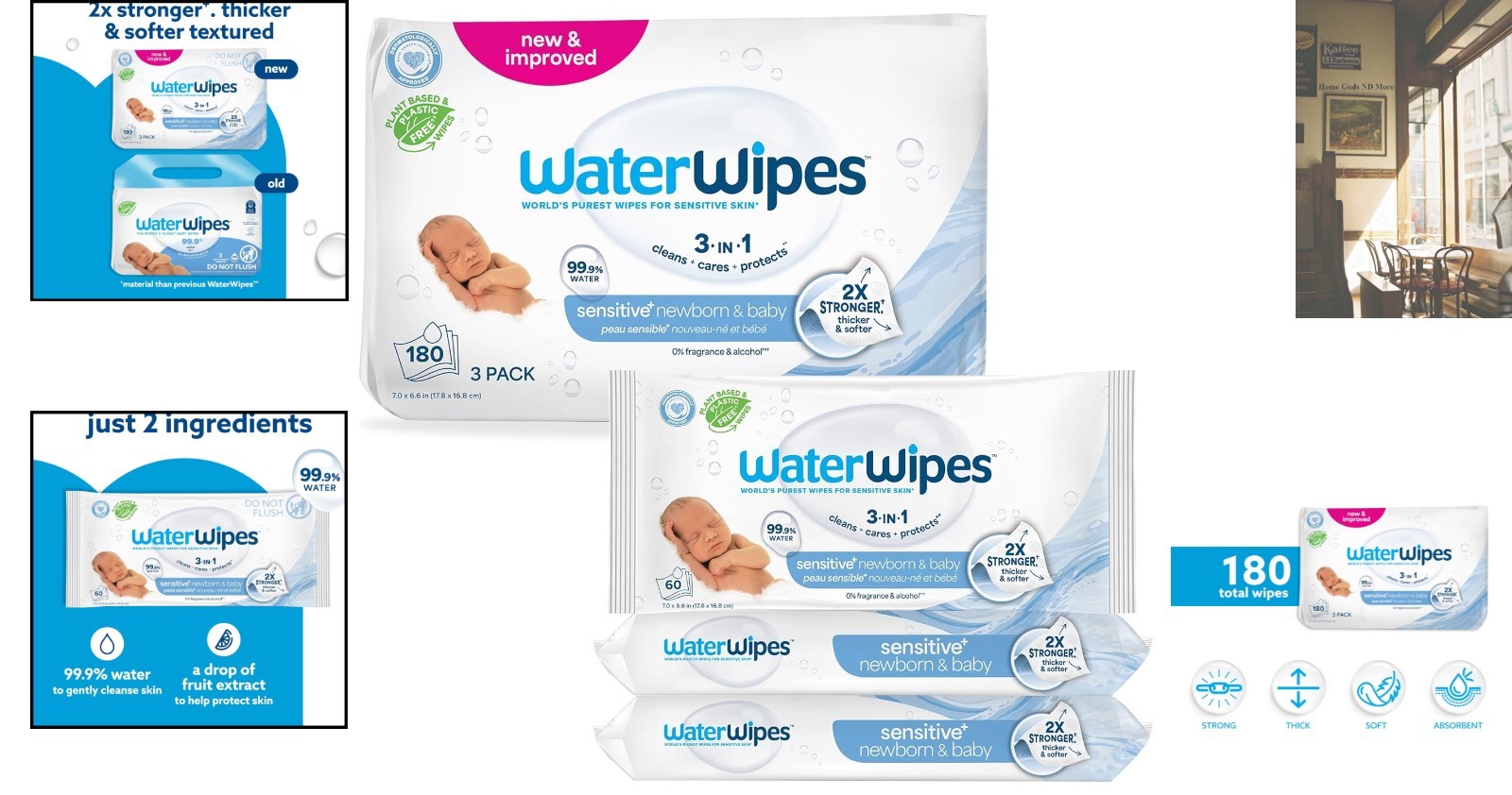 как выглядит Ultra-Gentle Plant-Based Baby Wipes for Sensitive Skin - 180 Count Pack of 3 фото
