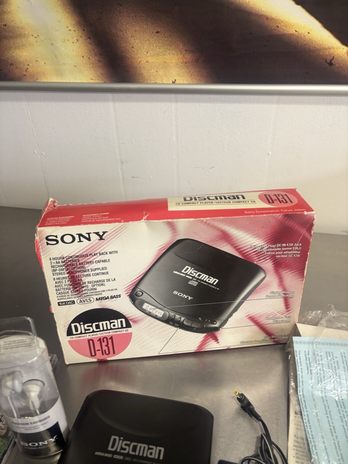 Sony Discman D-131 w/ Headphones, Charger, Connecting Cord, Manual TESTED WORKS