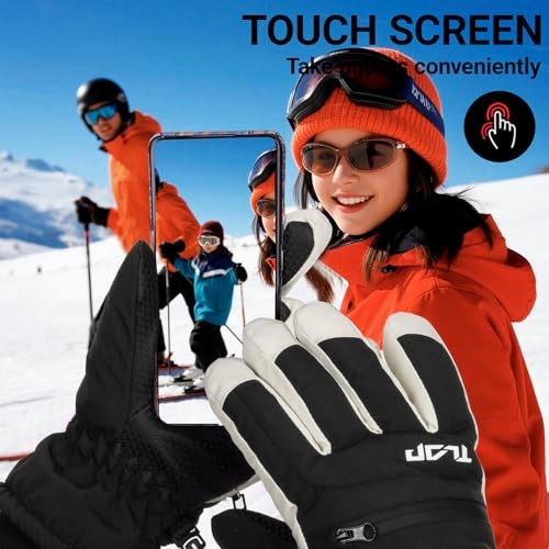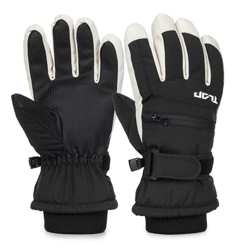 Kids Winter Ski Gloves,Warm Waterproof Snow for 8-12 years Black With Zipper