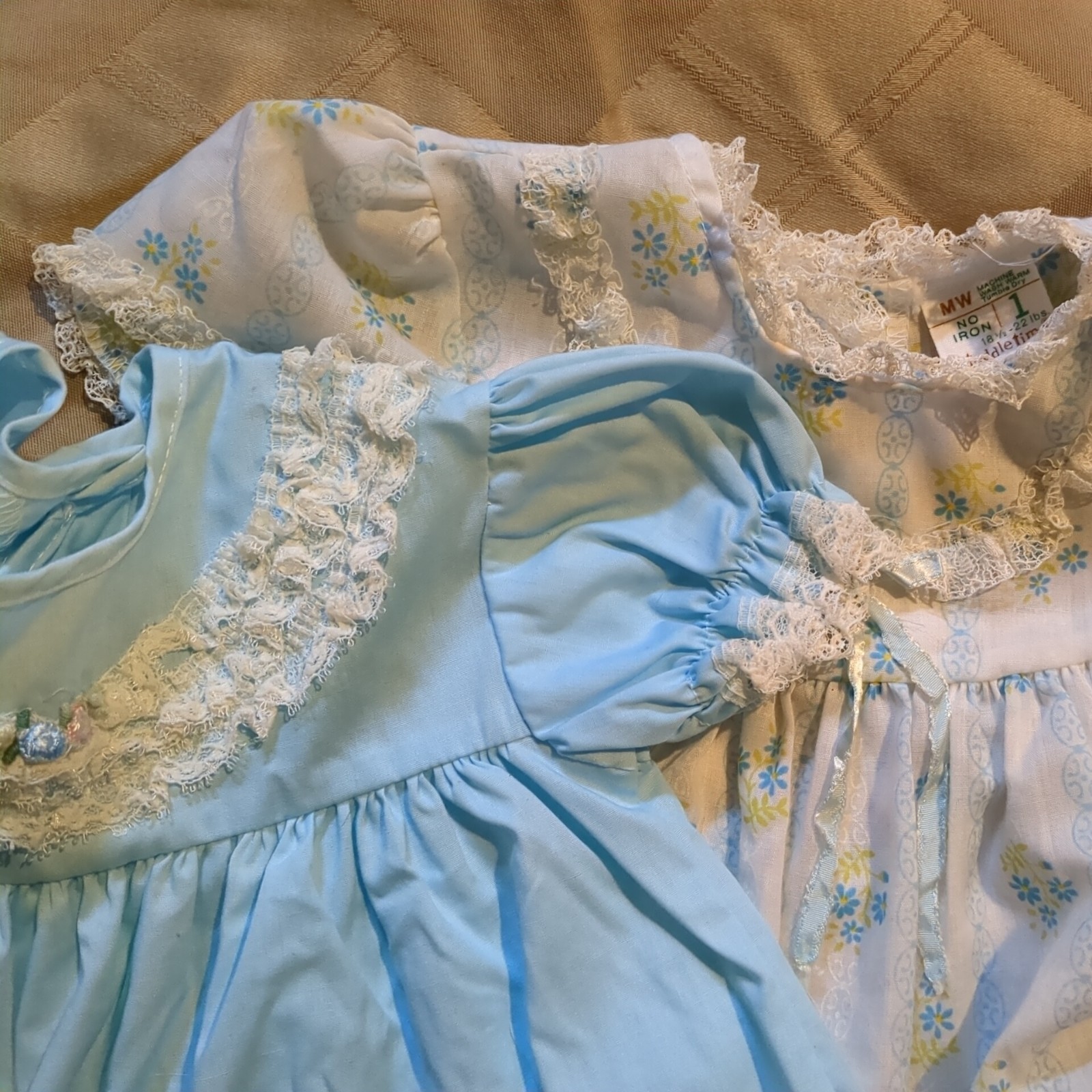 2 Vintage Baby Girl Dresses w/ Matching Bloomer Sz 18-23lbs Blue Floral Spring