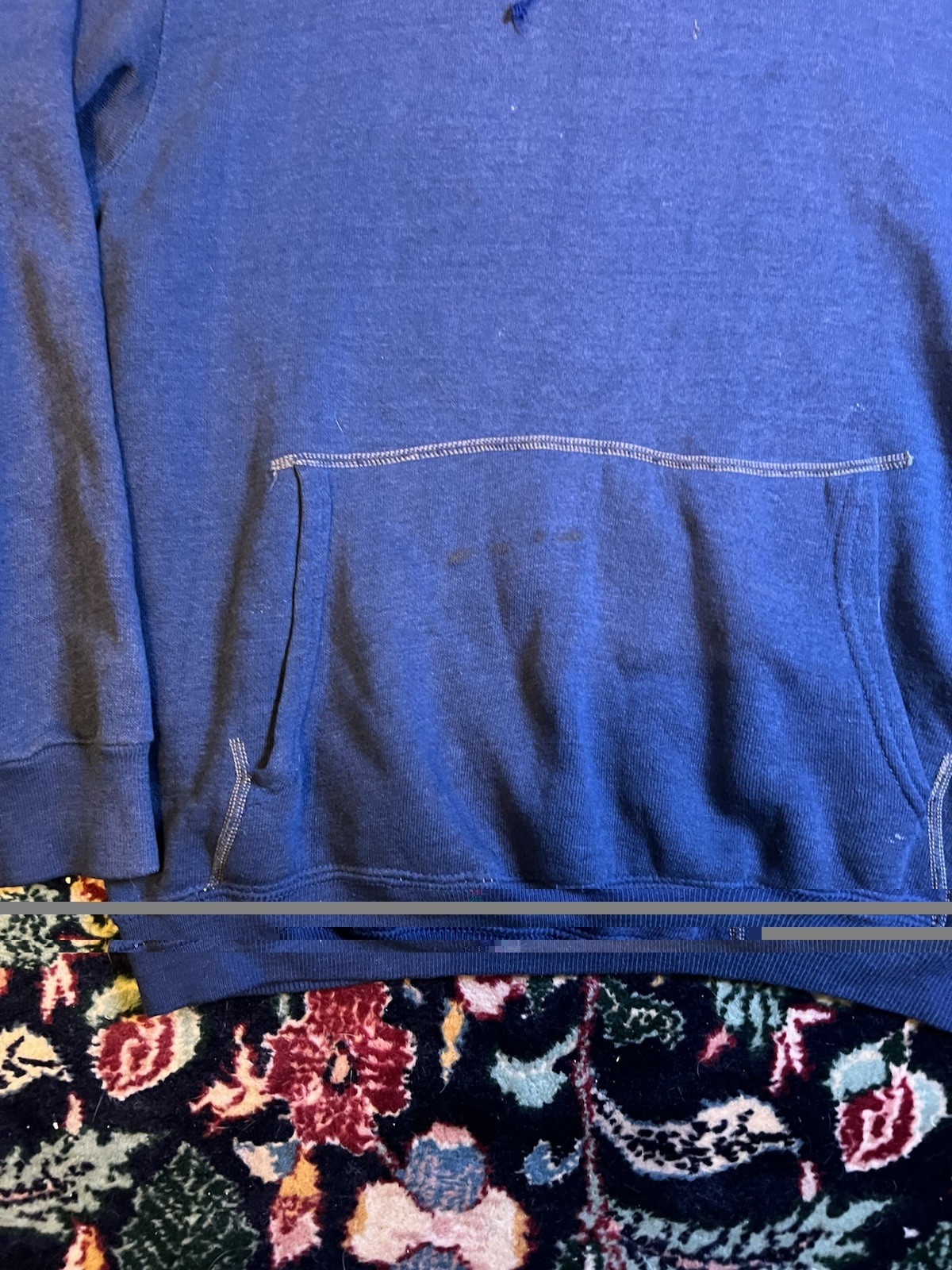 как выглядит Vintage 1970S Faded Navy Blue Pullover Hoodie Sz Medium 20.5x23 Contrast Stitch фото