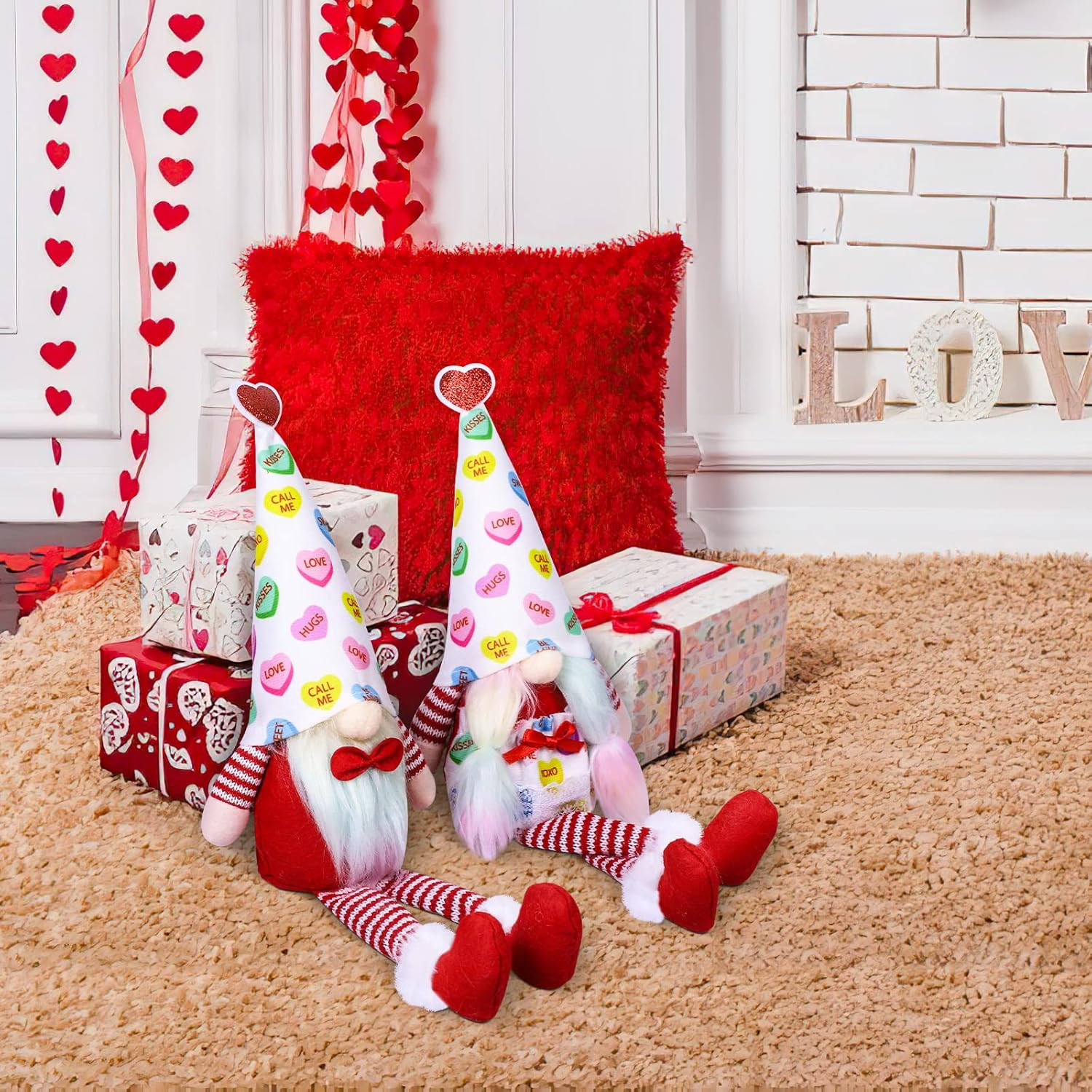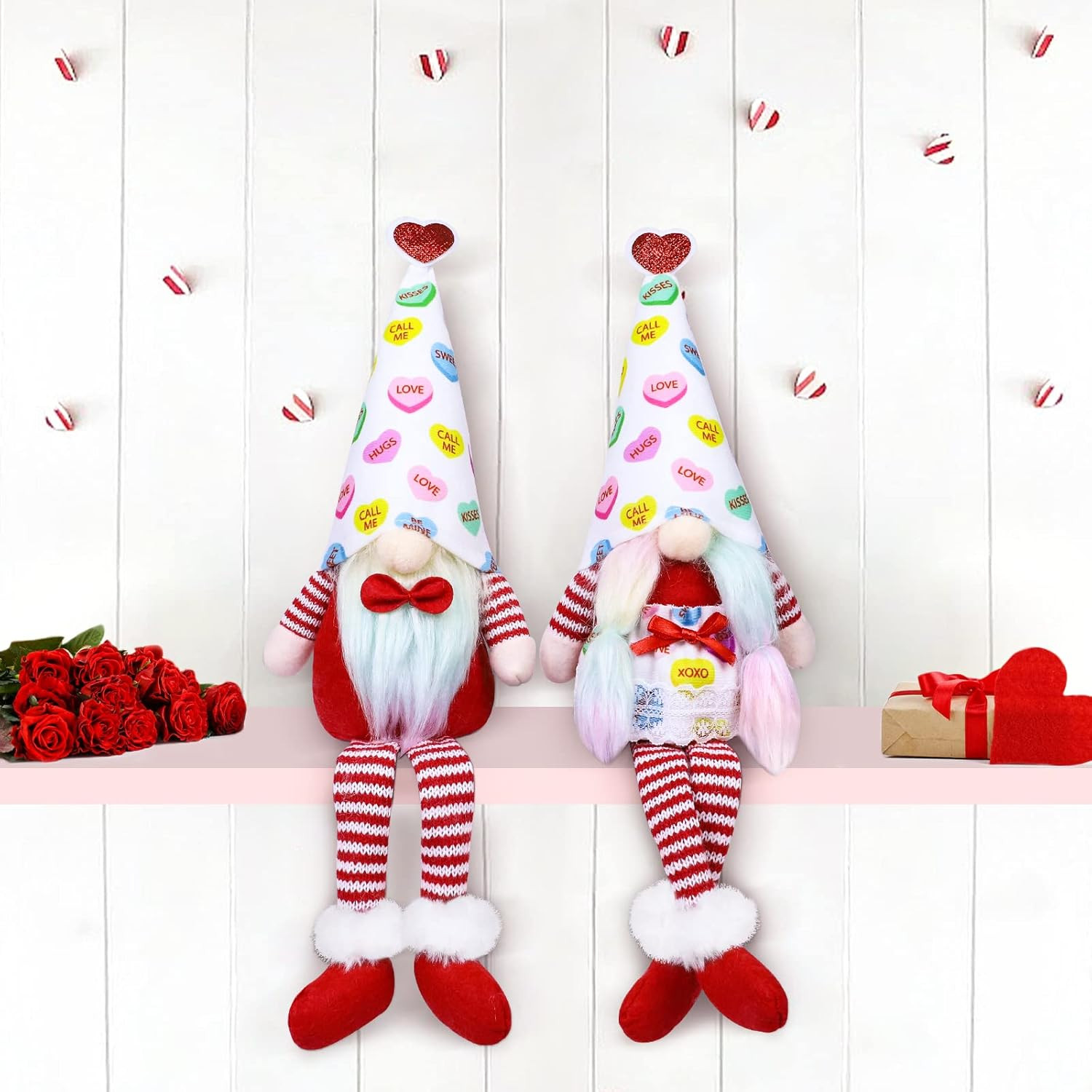 Valentine's Day Gnome Plush Decorations, 2-Pack Candy Heart Couple Gnomes