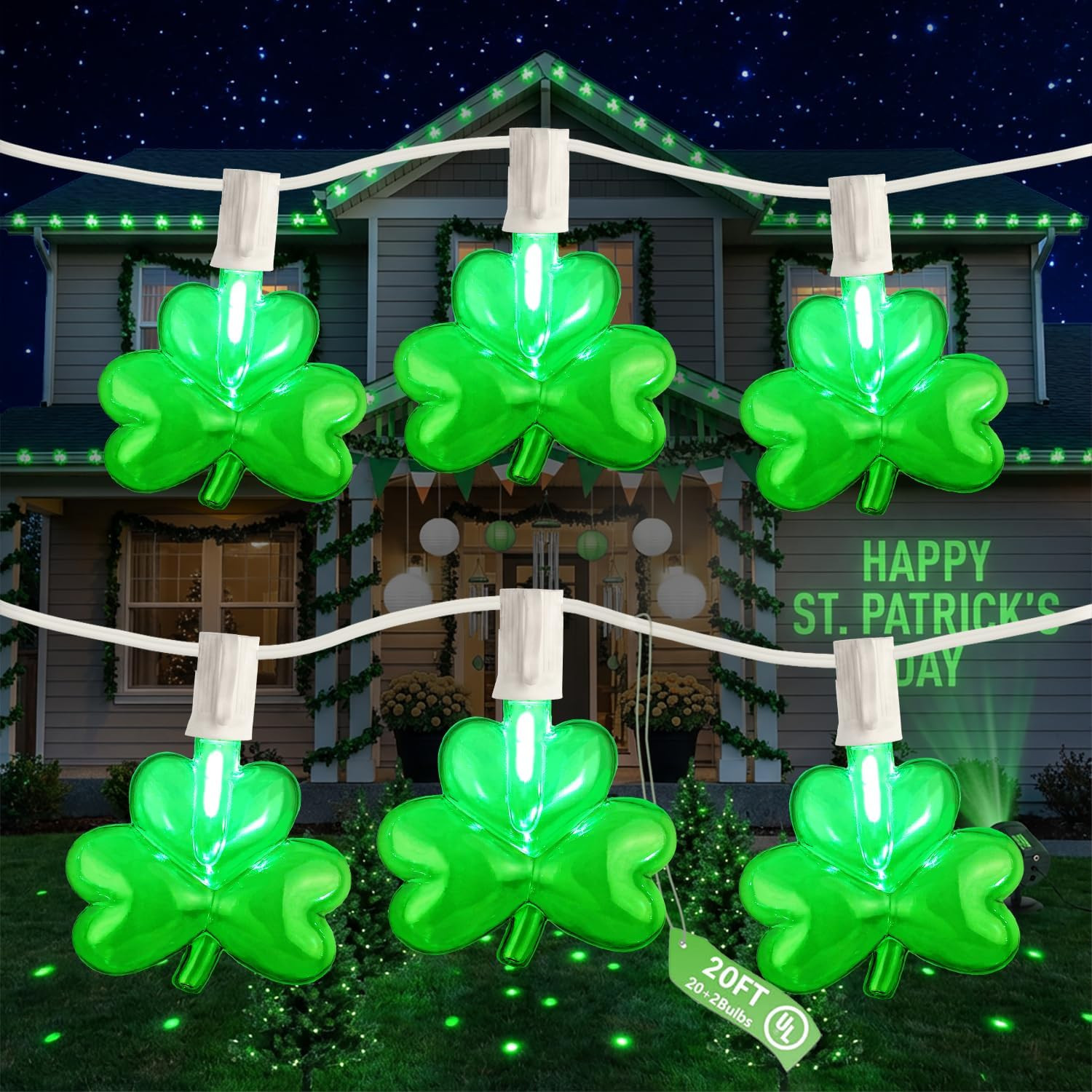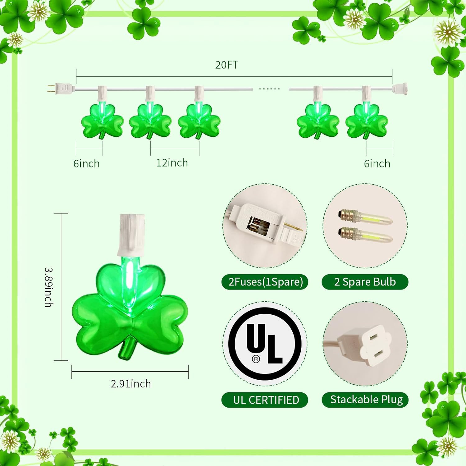 20Ft Shamrock String Lights with 22 LED Bulbs for St. Patrick's Day Decor