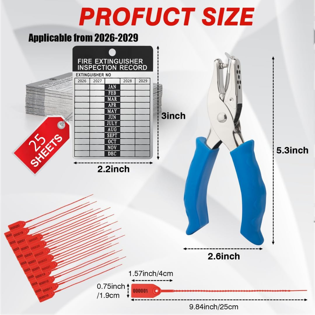 25 Sets Aluminum Fire Extinguisher Inspection Tags with Zip Ties and Puncher