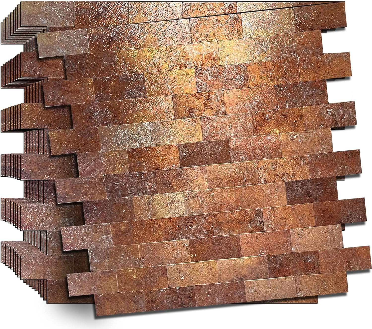 как выглядит 10-Piece Peel and Stick Metal Subway Tile Backsplash in Red Copper 12"x10.9 фото