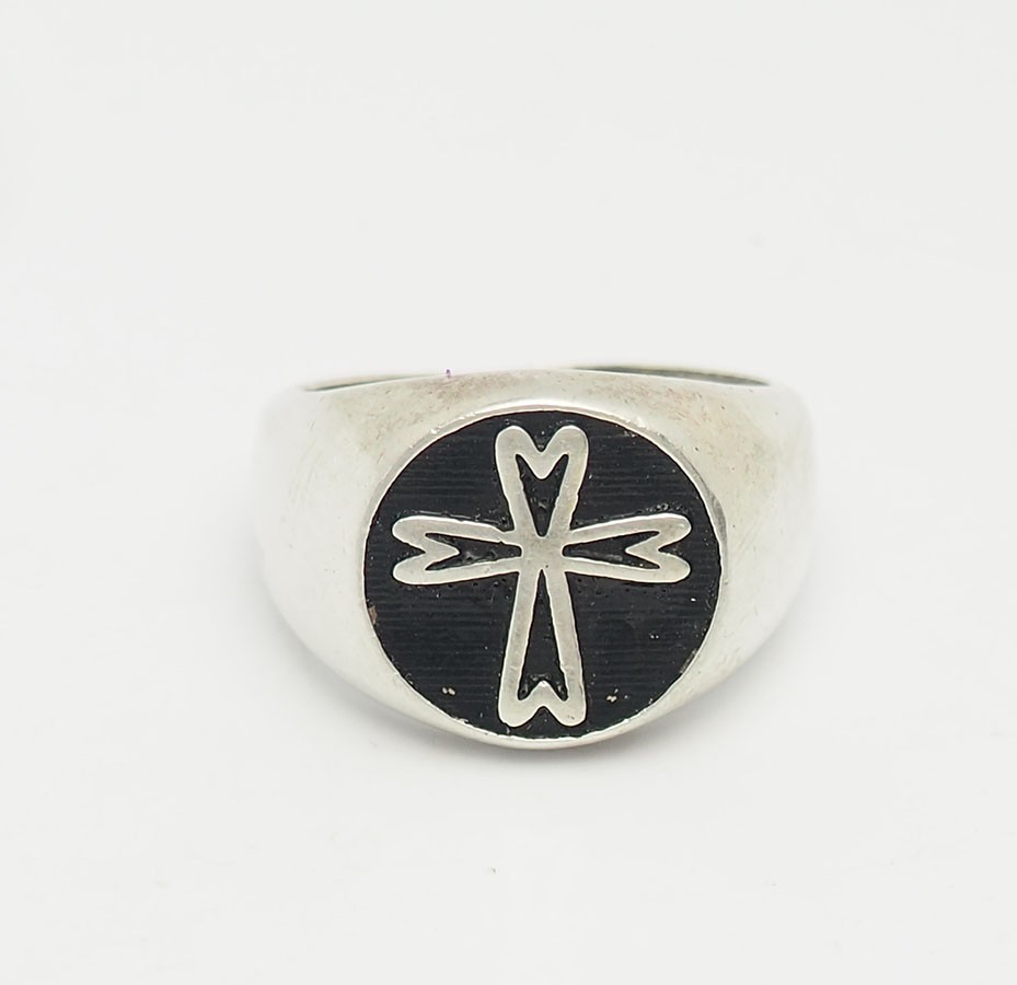 Vintage sterling silver cross detail men women ring size 10.5