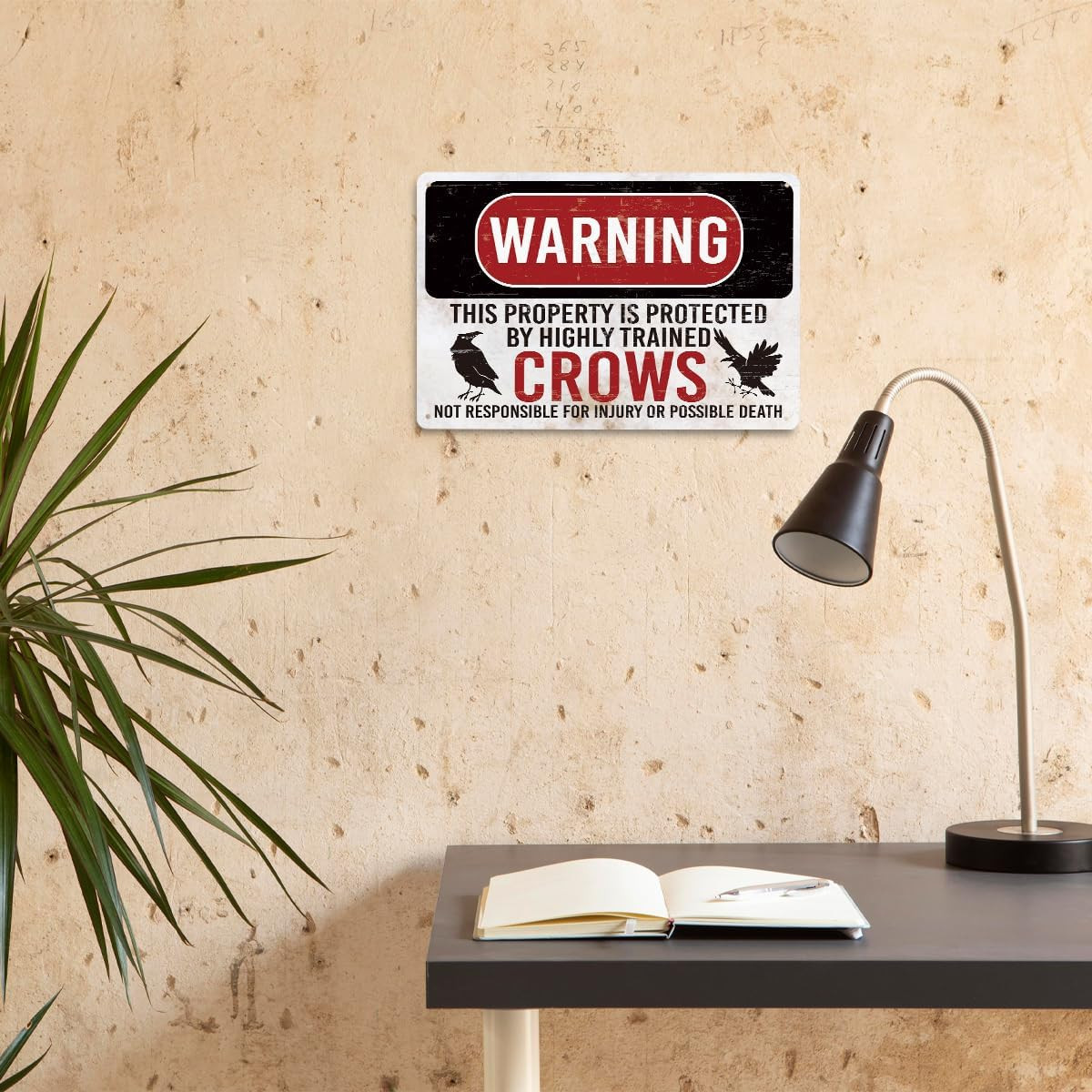 Funny Warning Metal Tin Sign, This Property Is Protected by Highly Trained Crows