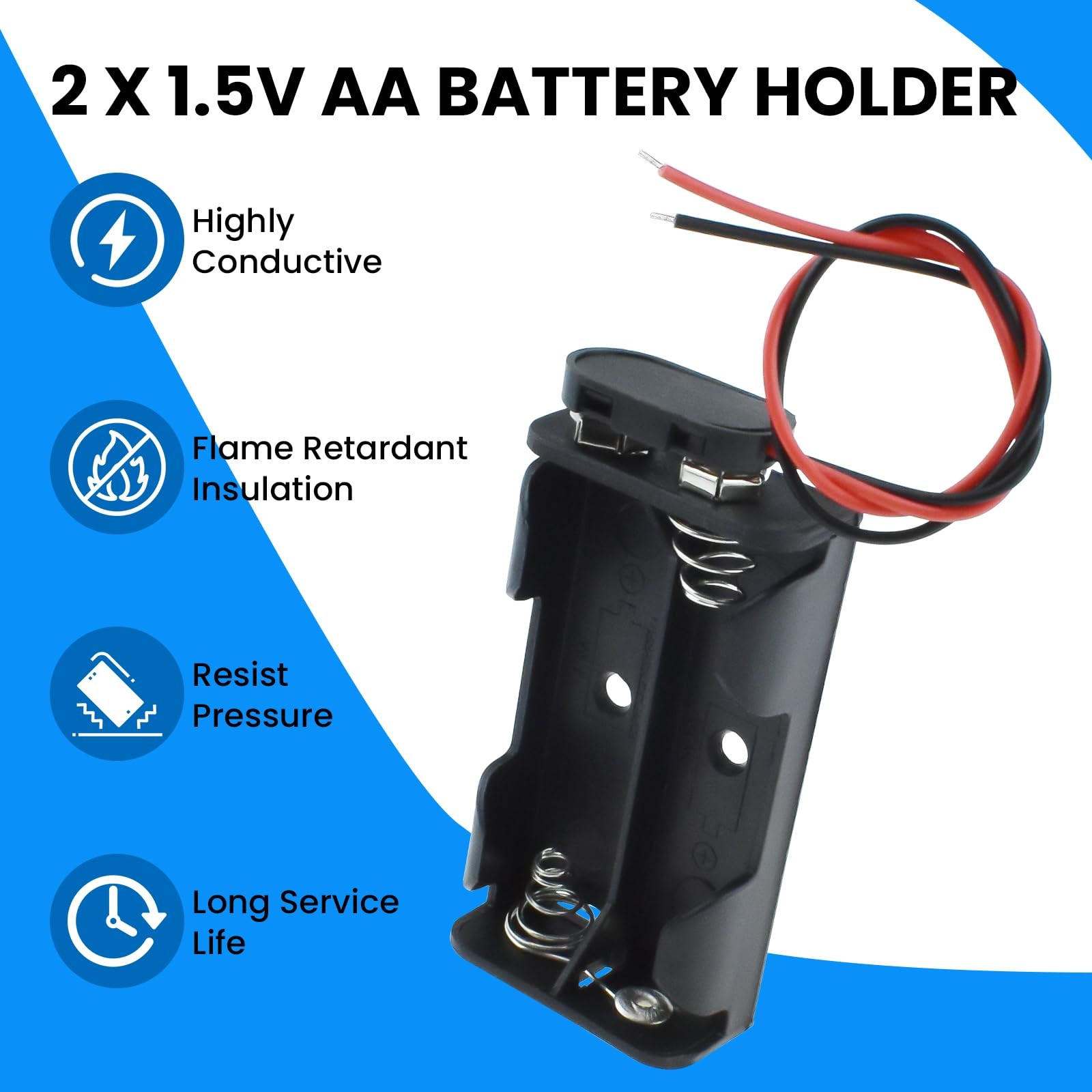 SDTC Tech 2-Set 2X 1.5V AA Battery Holder and I Type Snap Connector 2 Slot