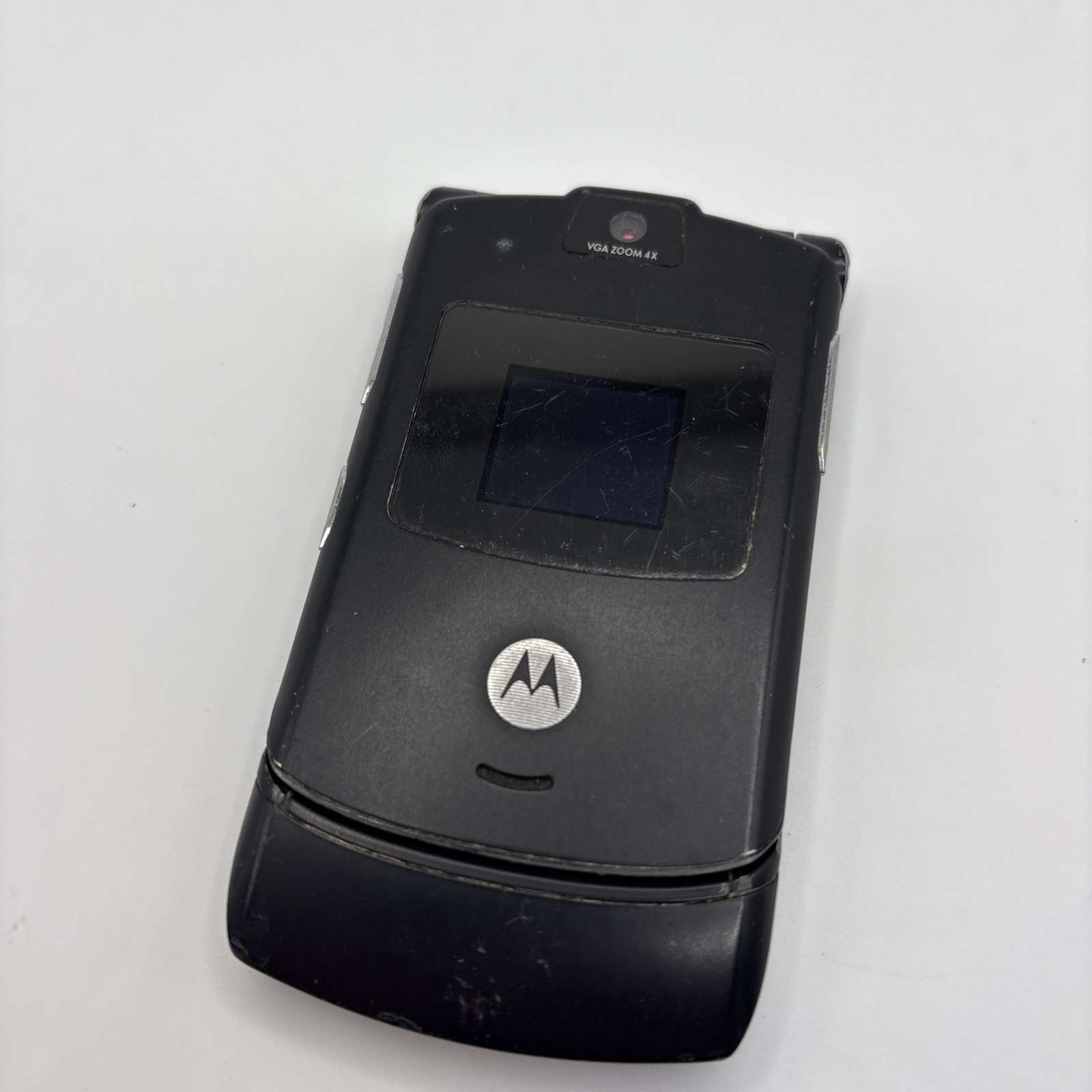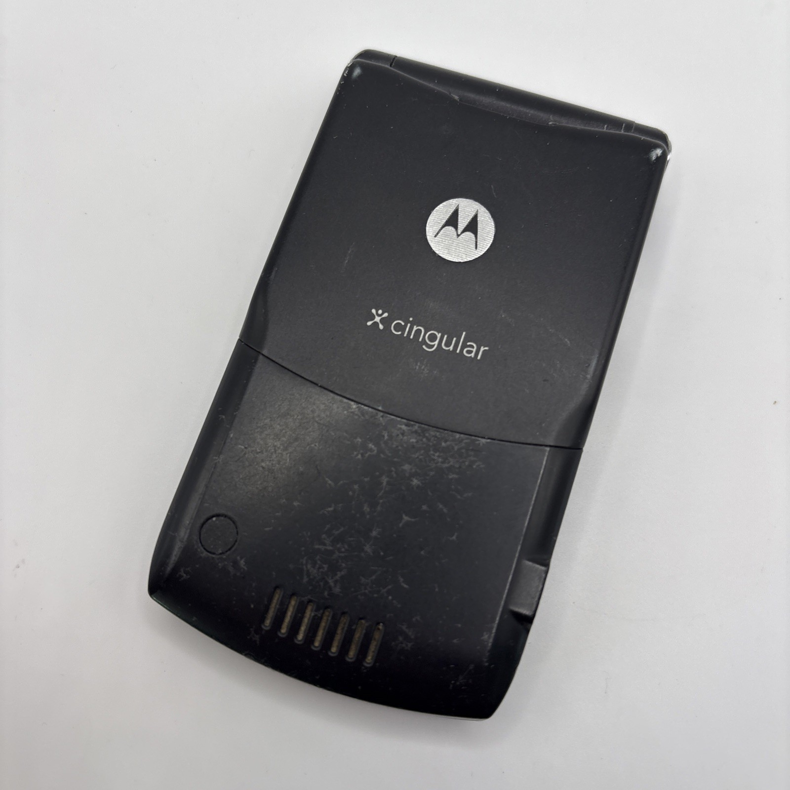 Motorola RAZR V3 Cingular Flip Phone Black w/ Battery/Charger TESTED - 18-04