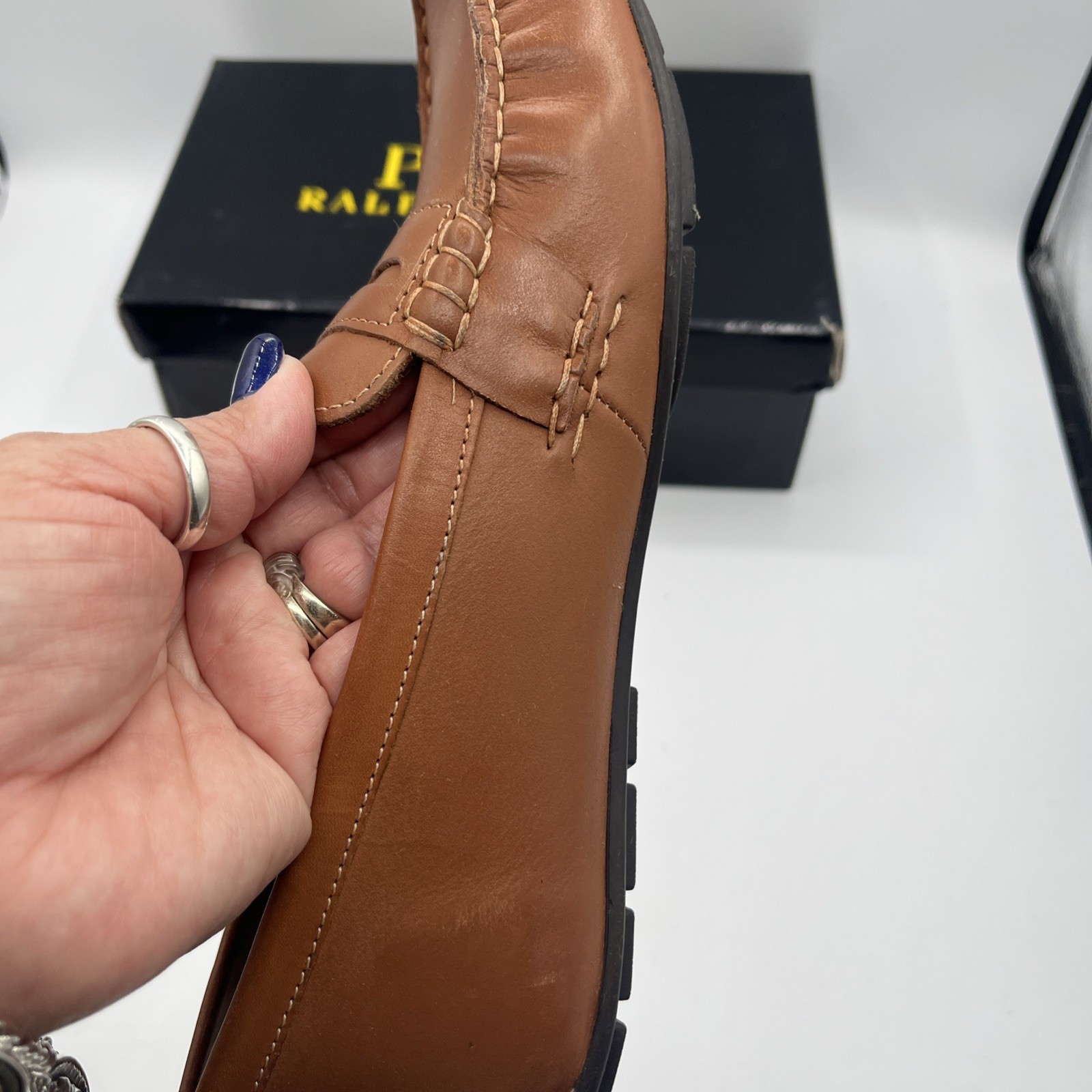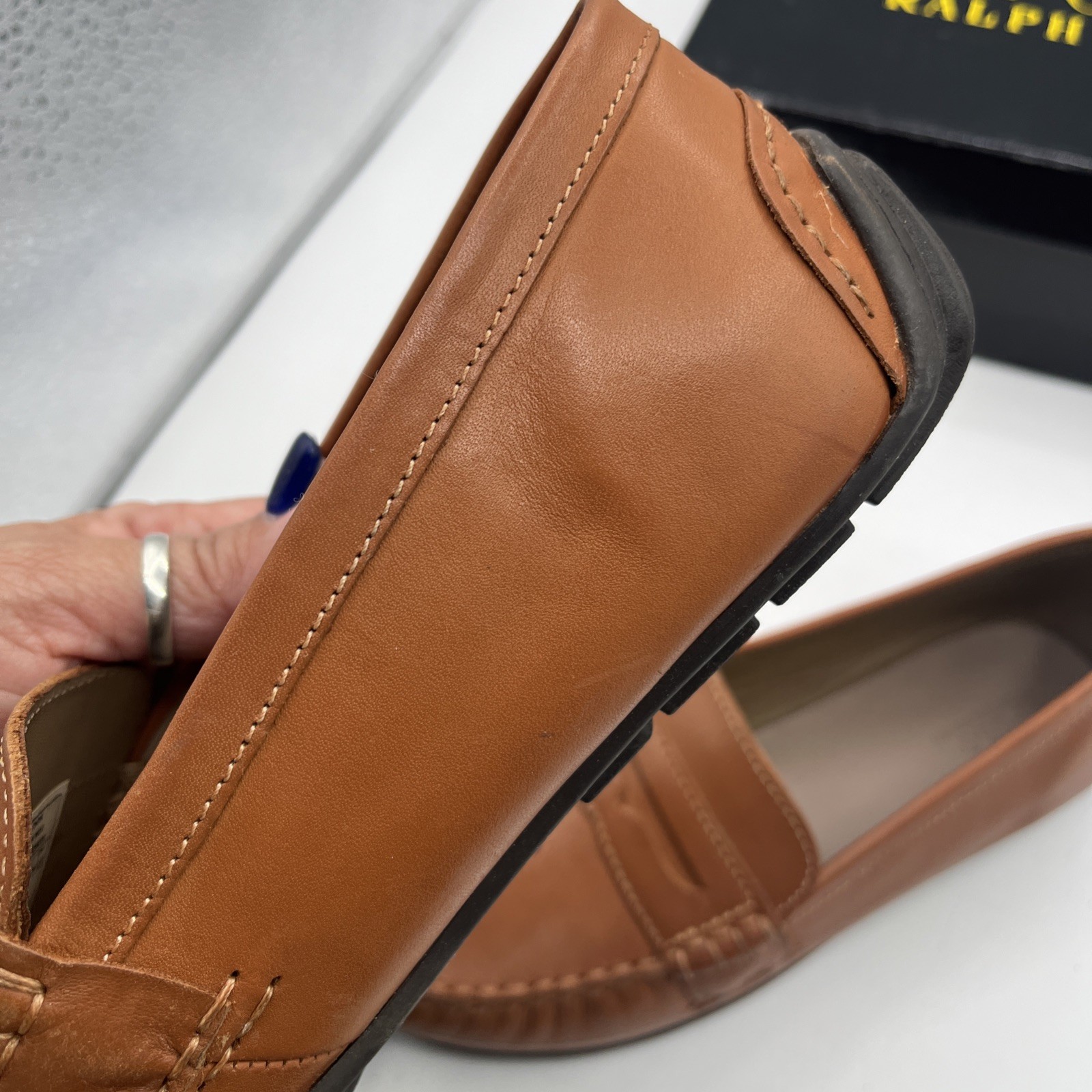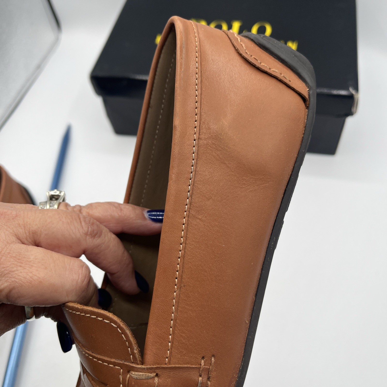 как выглядит POLO RALPH LAUREN Loafers Shoes TELLY 92412J TAN Leather Boys Size 5 1/2 JUNIOR фото