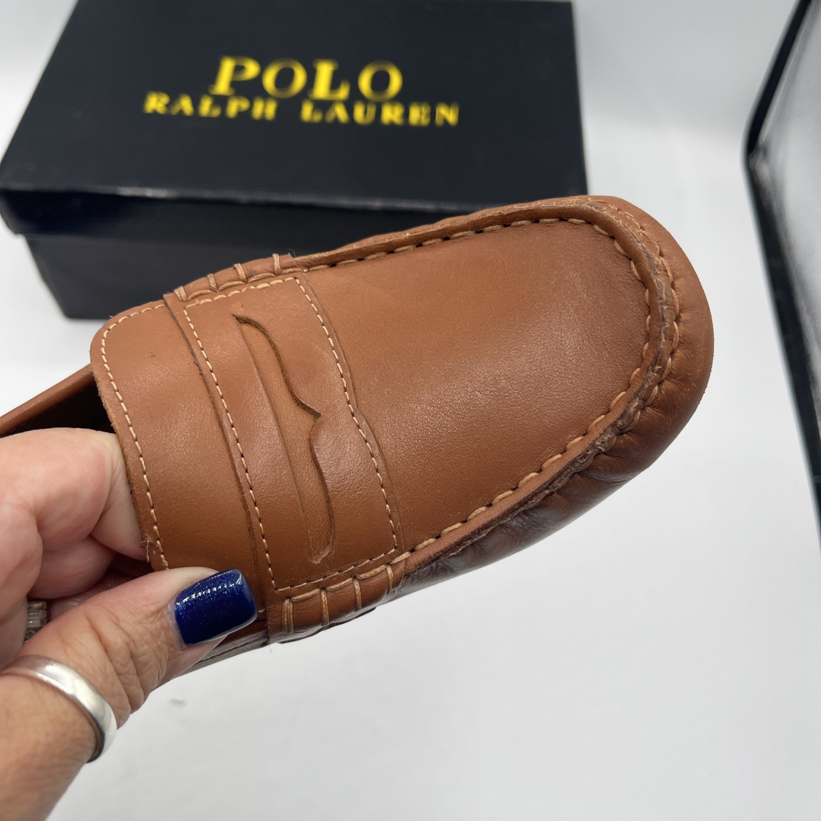 POLO RALPH LAUREN Loafers Shoes TELLY 92412J TAN Leather Boys Size 5 1/2 JUNIOR