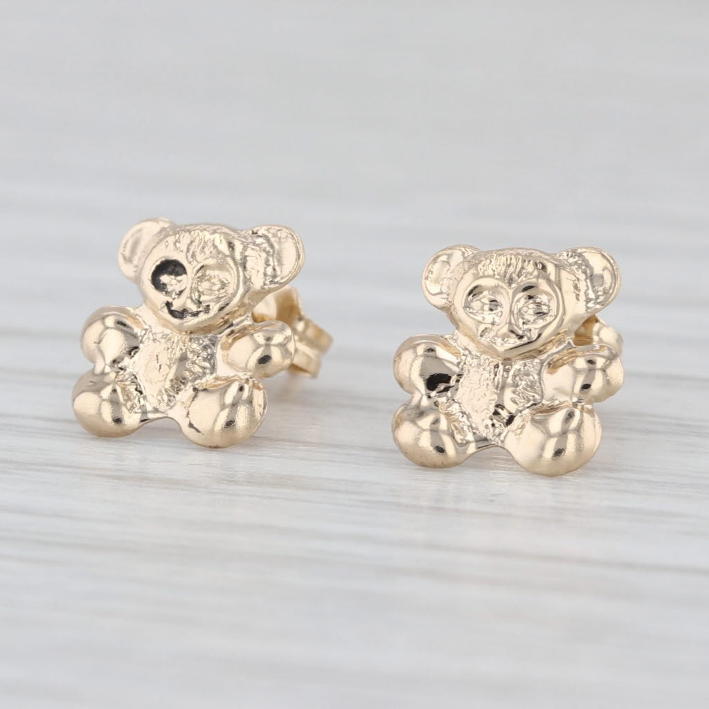 Small Teddybear Stud Earrings 14k Yellow Gold Bear Studs