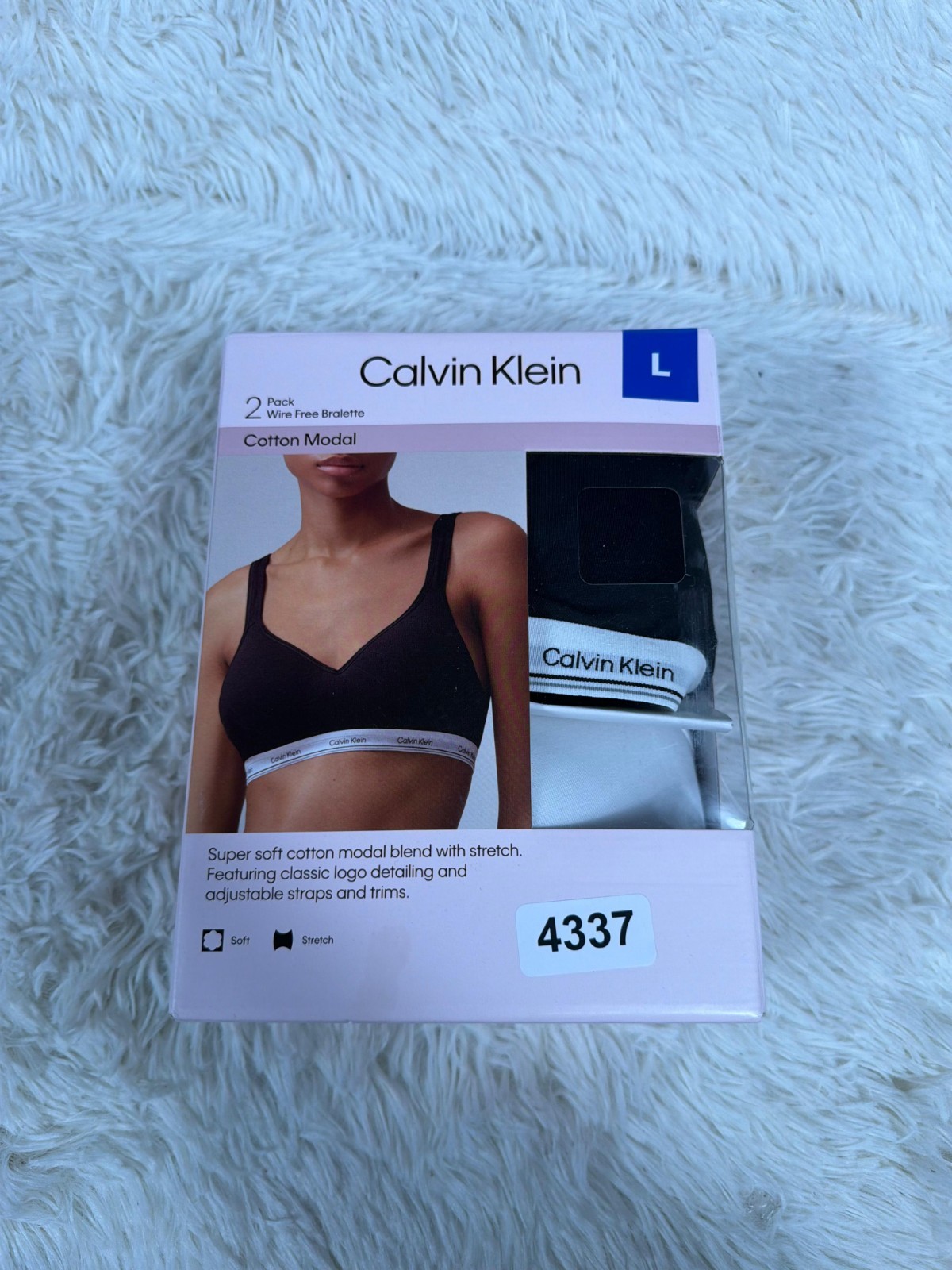 Calvin Klein Wire Free Bralette 2 Pack Womens Large Black White Super Soft NEW