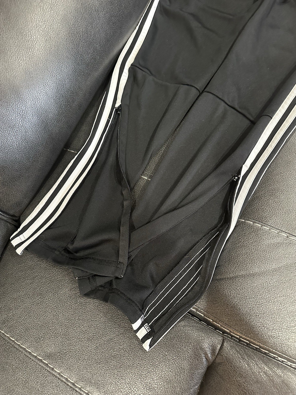 как выглядит Black 3 Stripe Adidas Joggers Sweatpants Zipper Ankle Women s Size Medium фото