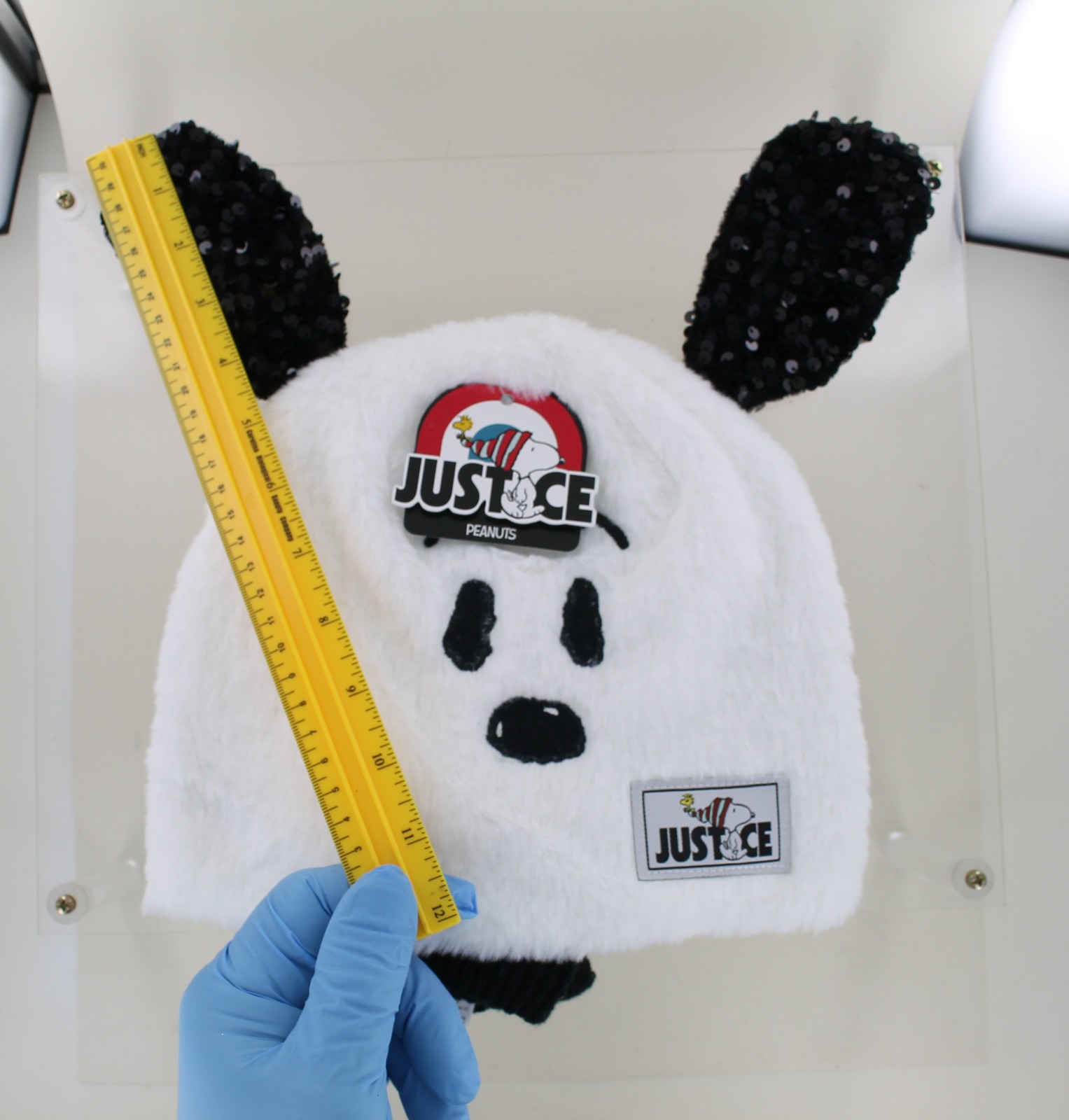 New Justice Snoopy Faux Fur Sequin Beanie Hat with Gloves