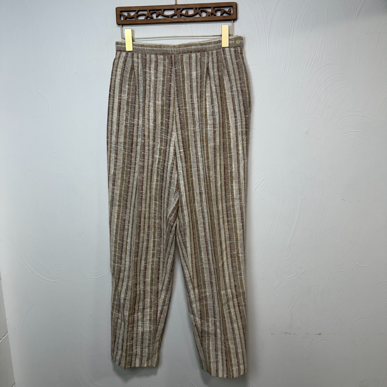 как выглядит Sag Harbor Striped Linen Cotton Brown Pants Womens Vintage Made In USA 13/14 фото
