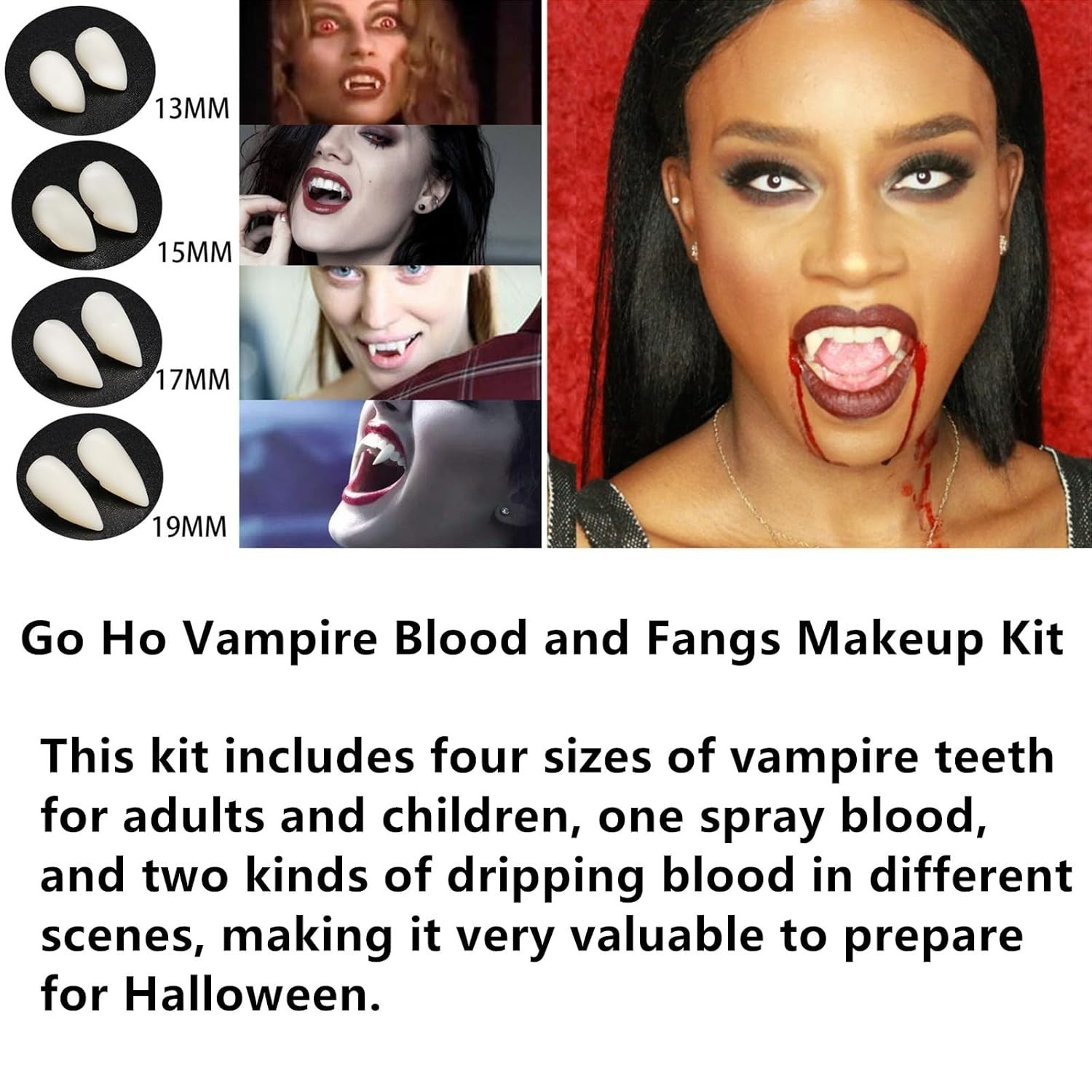 Halloween Vampire Fangs Teeth Makeup and Fake Blood Kit,4 Pairs Vampire Fangs...