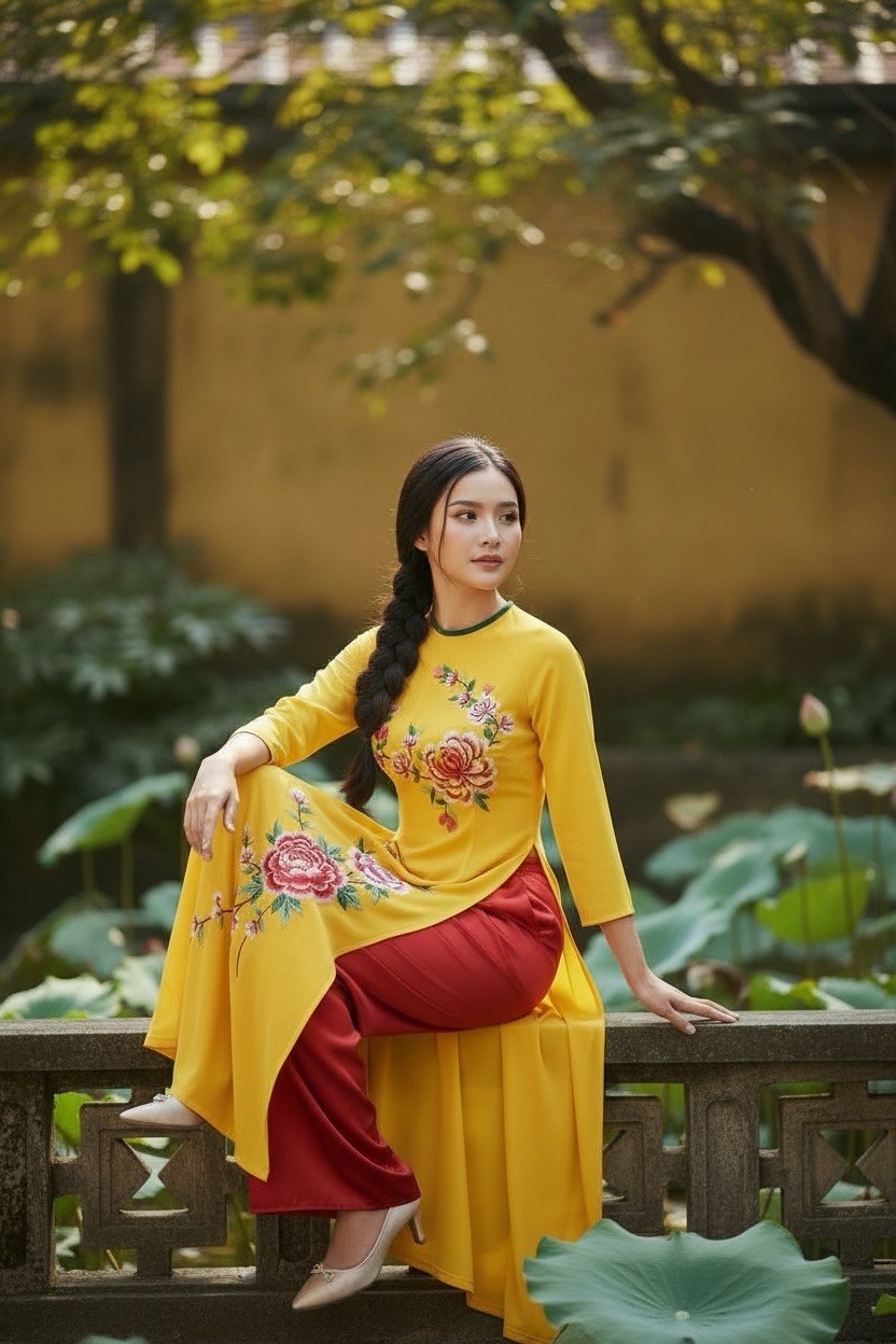Ao Dai Set - Modern Vietnamese o D i Dress for Lunar New Year T t - With Pants