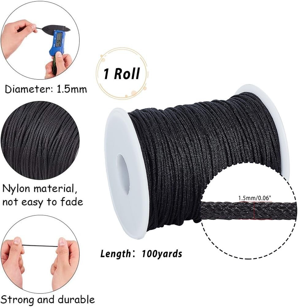 1.5mm 100 Yard Black Nylon Cord Wind Chime Cord Replacement Braided Blind String