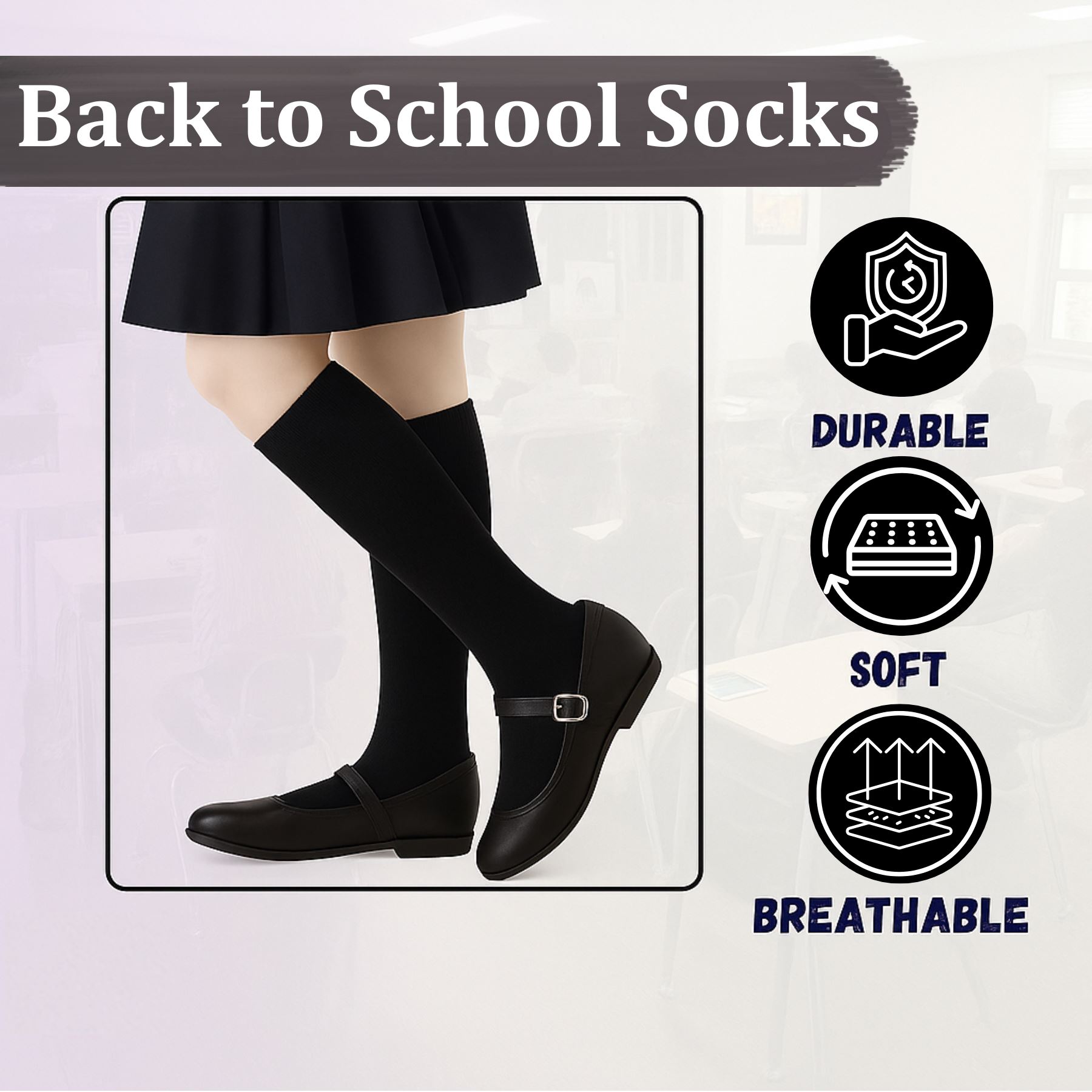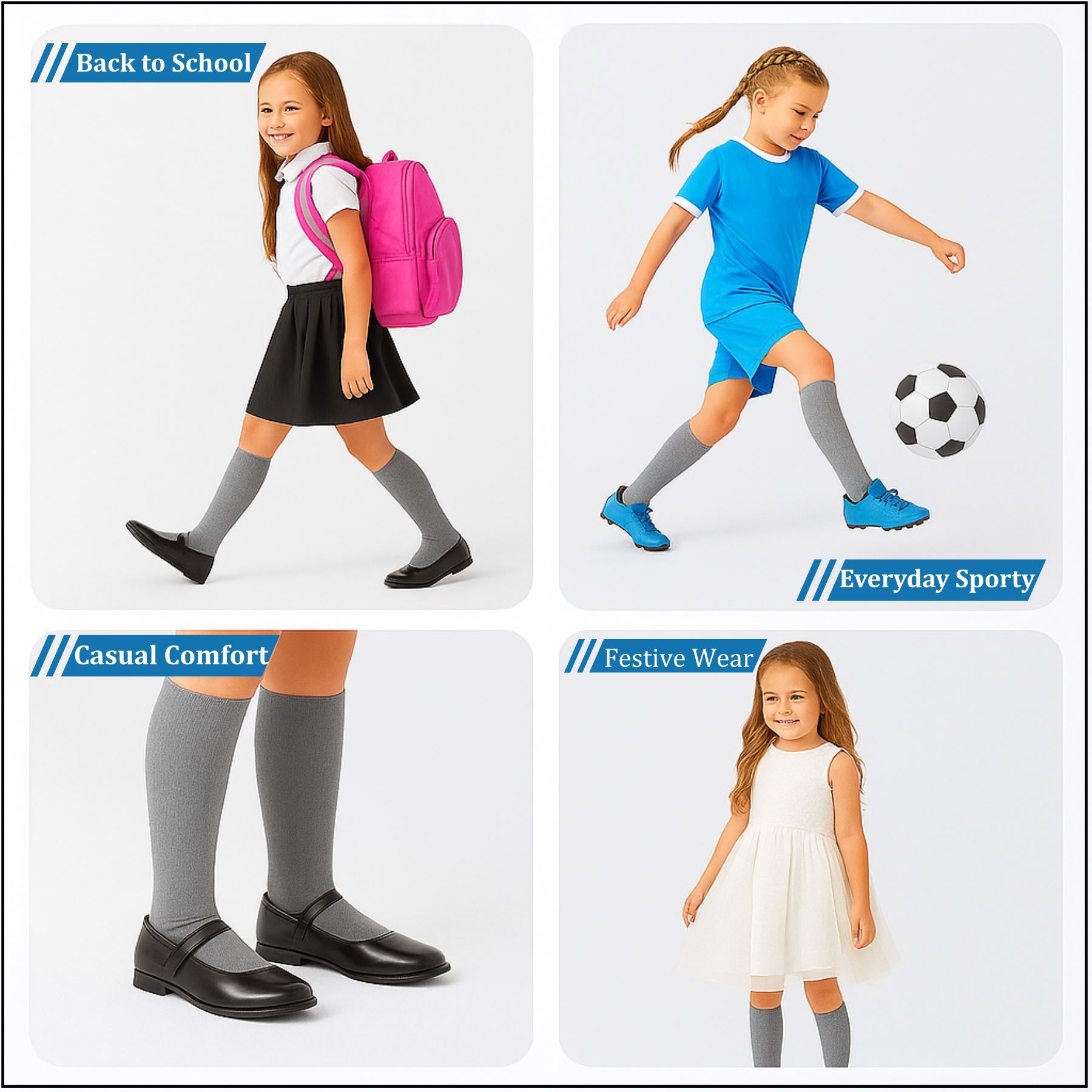 Kids Girls Boys Socks 3 Pack Plain Knee High Comfortable School Cotton Socks