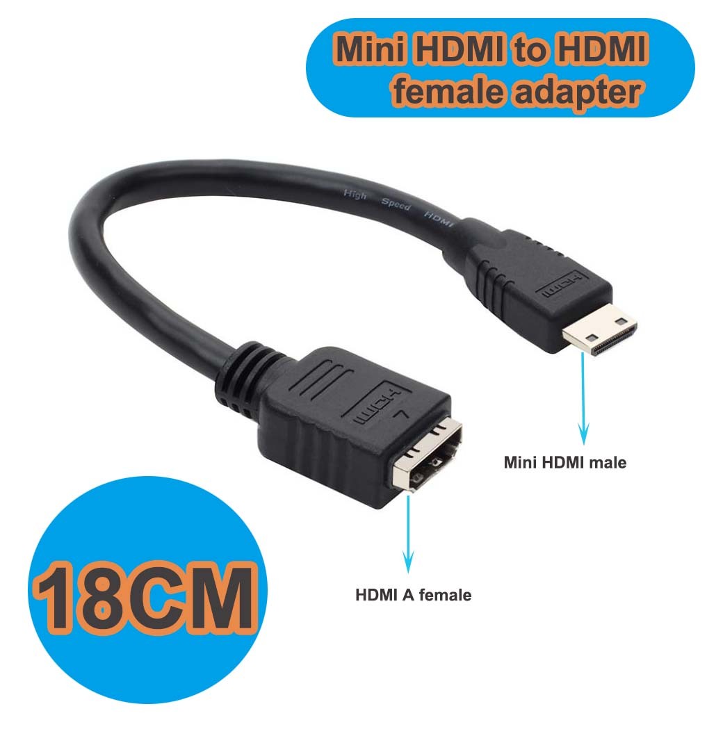 Mini HDMI Male to HDMI2.0 Female Adapter Cable 4K60Hz Converter Short Cord 18CM