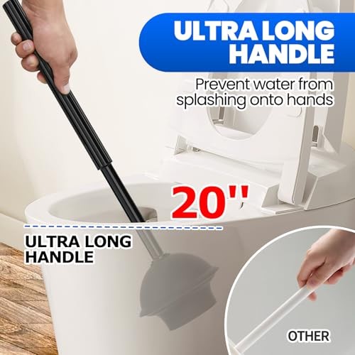 4-Piece Toilet Brush and Plunger Set, Extended Handle 1Pack Black