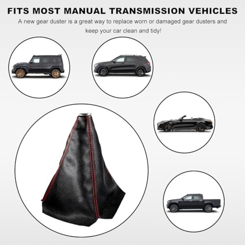 Car Shift Knob Dust Cover, Leather Manual/Auto Gear Gaiter Shifter Black Red