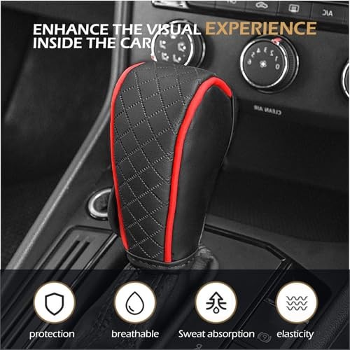 • Car Gear Shift Cover, Leather Shifter Cover, Gear Shift Knob Cover for Red