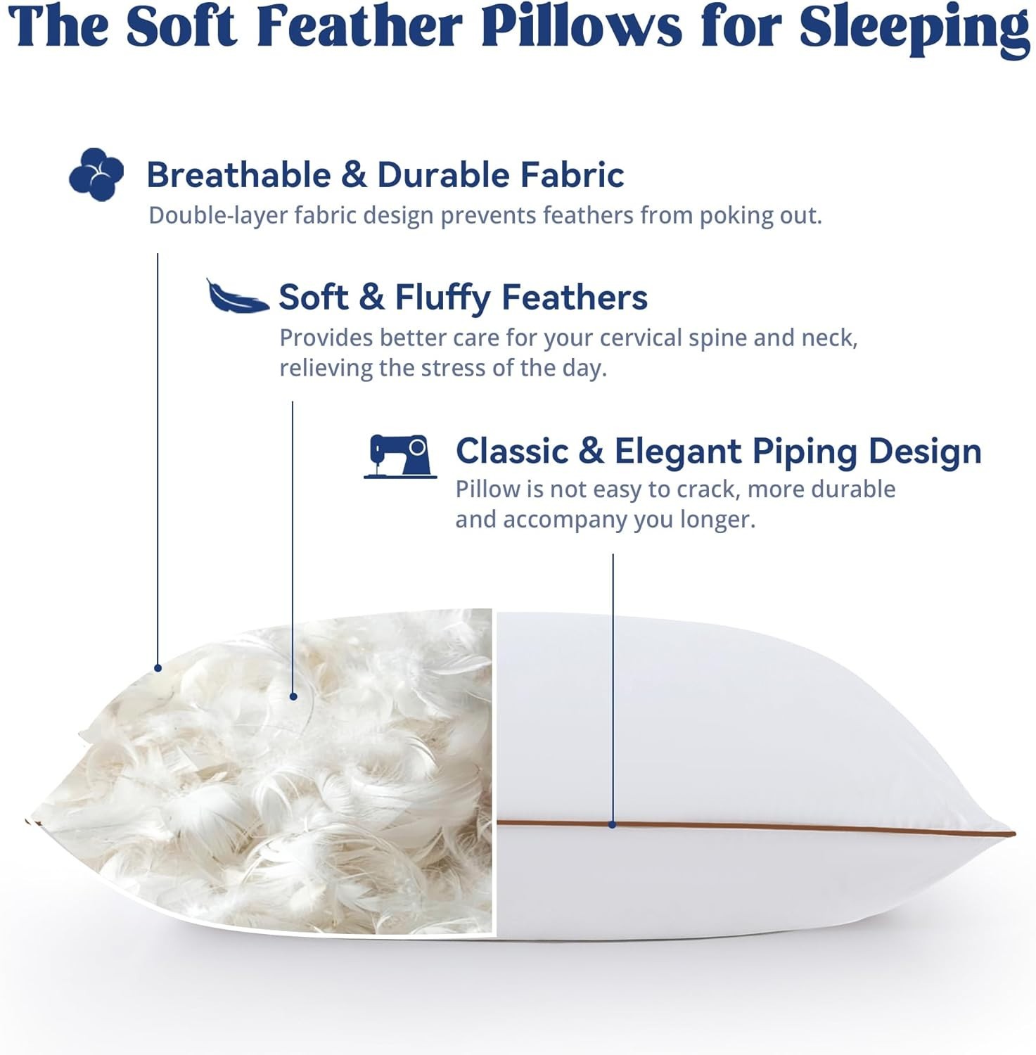 Goose down Pillows - Set of 2 Feather Pillows, Queen Size 20X28