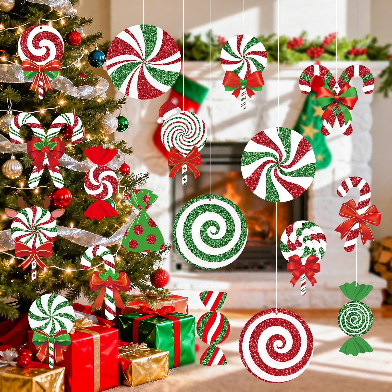 • 18Pcs Candy Christmas Decorations Outdoor Large Hanging Large, Green