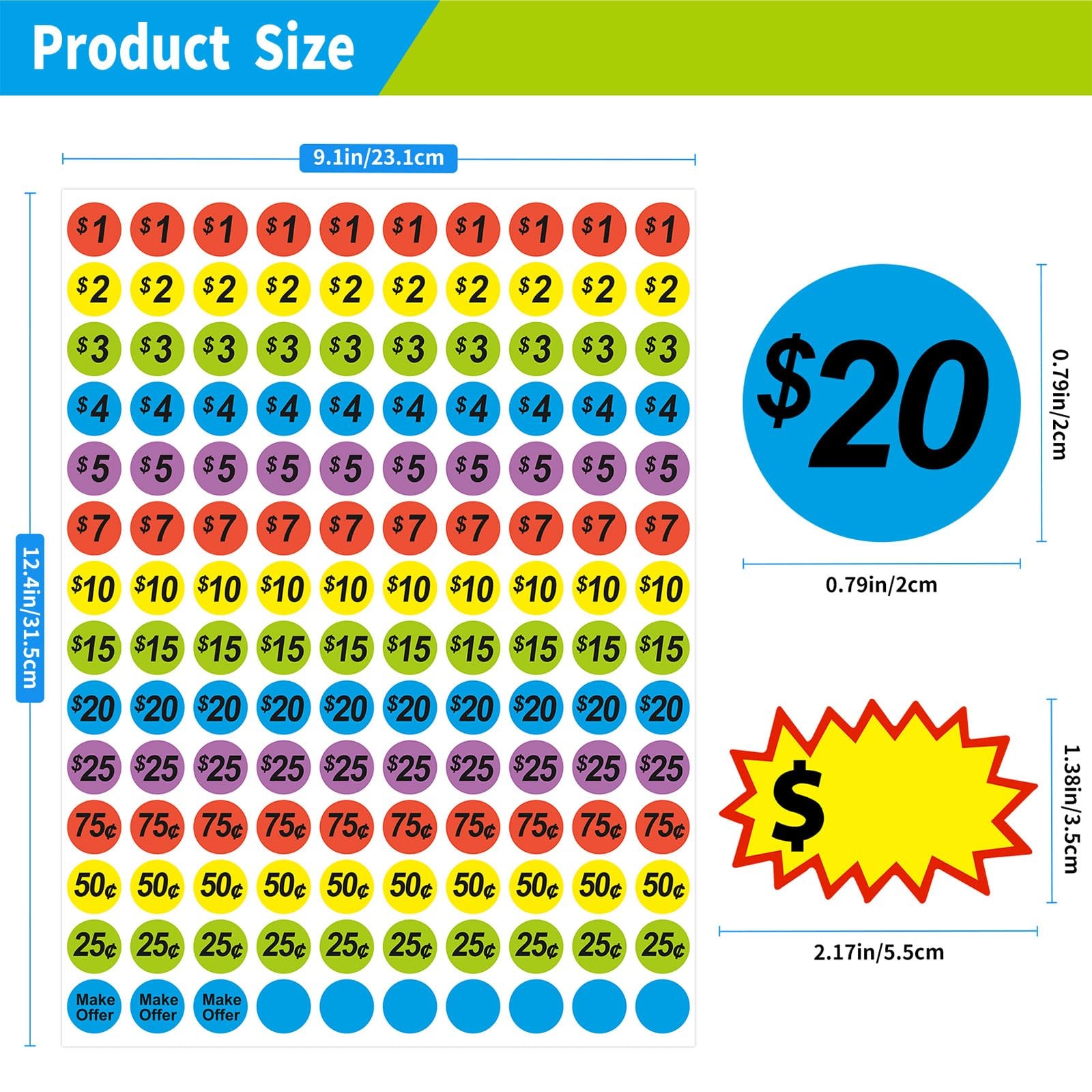 как выглядит 1560 Pcs 3/4 inch pre-printed , 1.41 x 2.2 inches blank , Multicolor фото