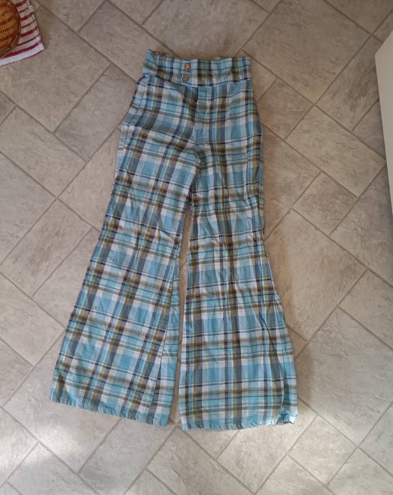 как выглядит Vintage 60s/70s Blue Plaid Flared Pants, Academic Retro Disco High Waist фото