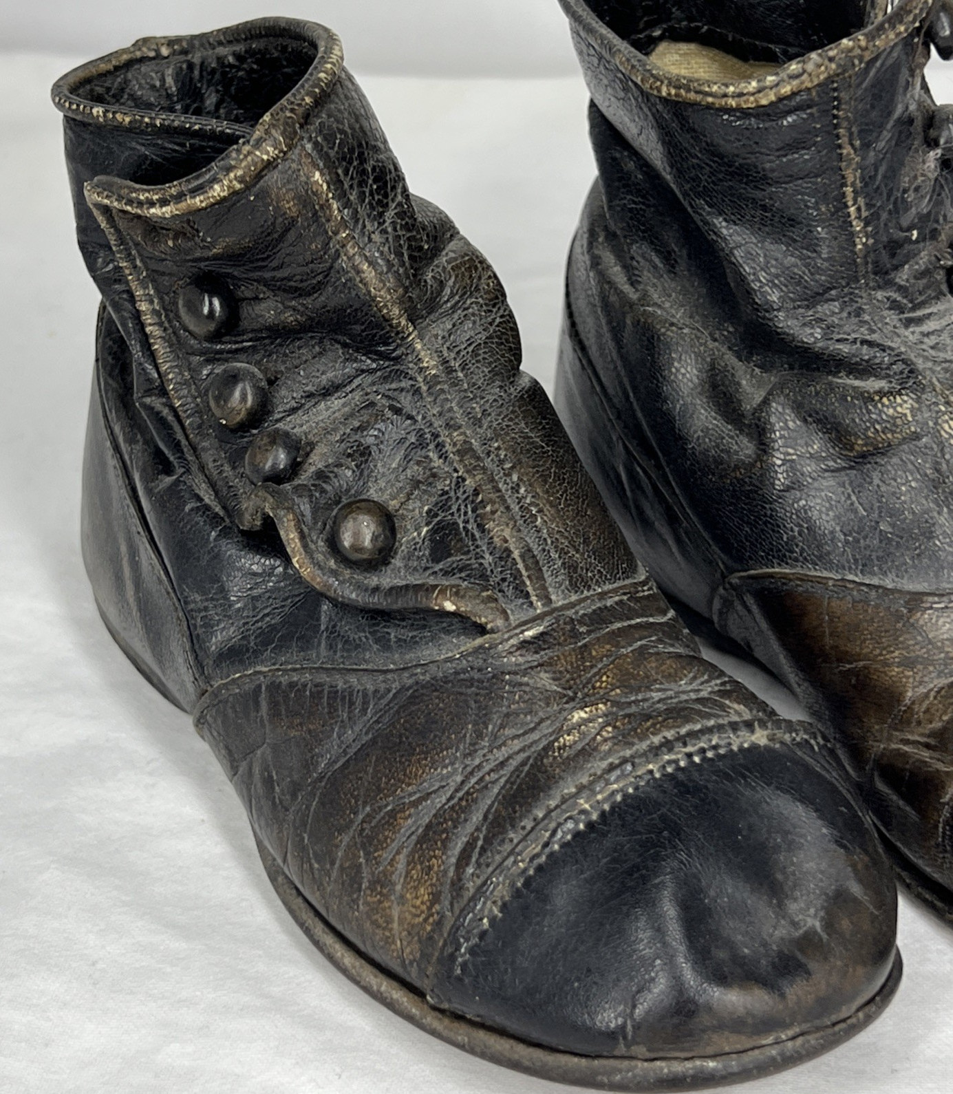 Victorian Child s High Top 5 Button Brown Antique Leather Baby Shoes 5.75 Long