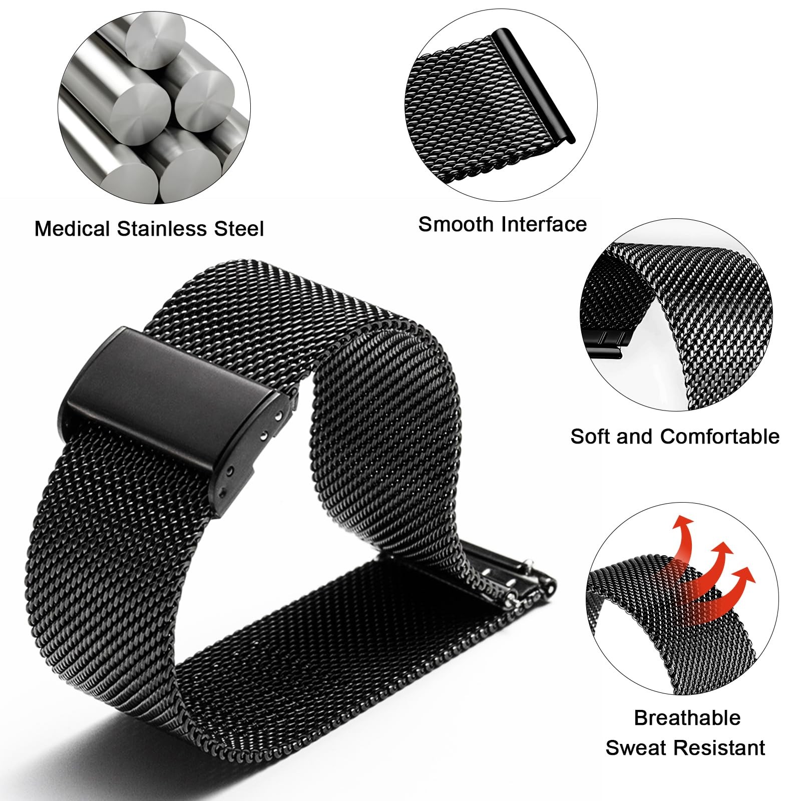 TStrap Mesh Watch Band Metal - Black Quick Release Bands 22mm,