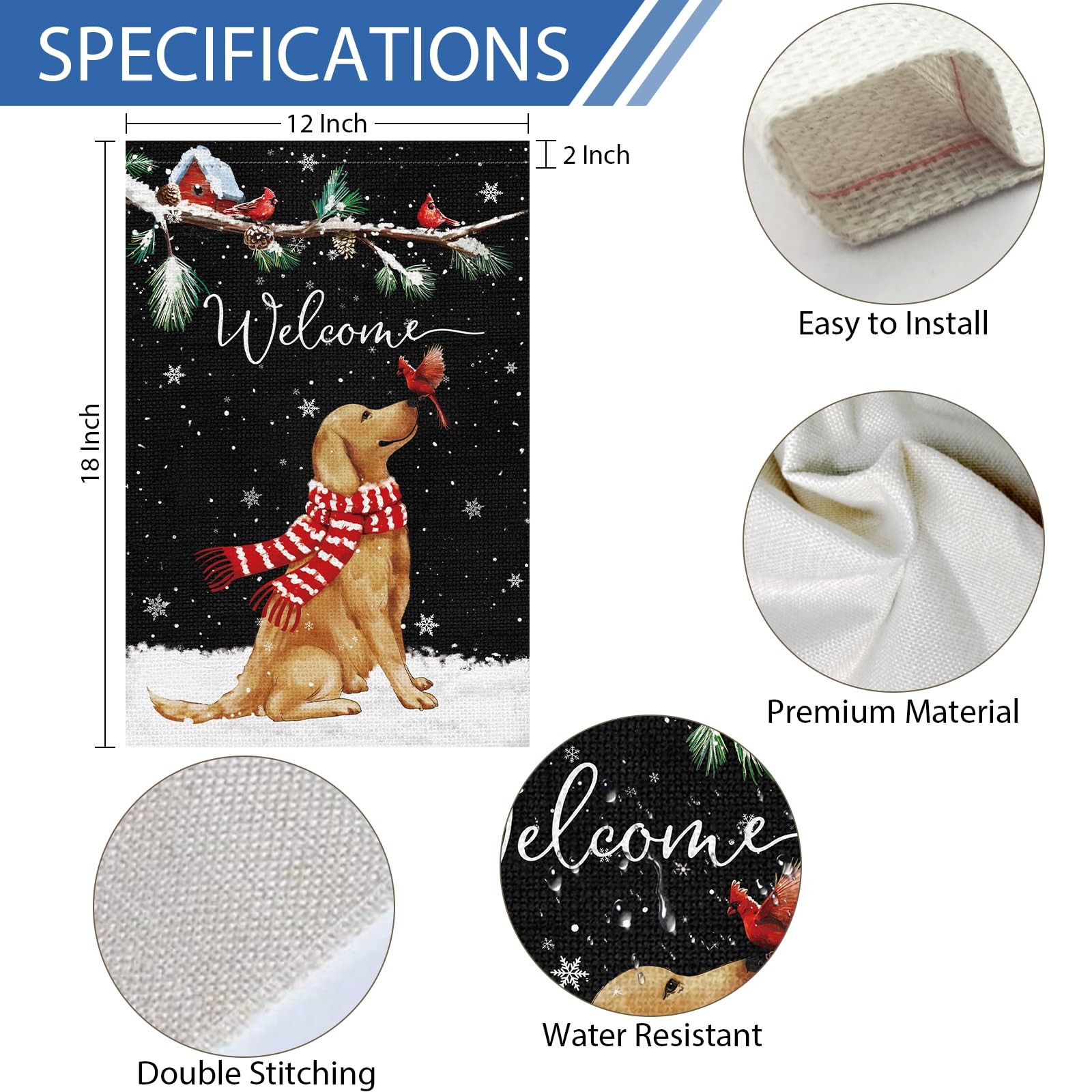• Welcome Winter Garden Flag 12 x 18 Inch Double Sided 12" 18", Christmas