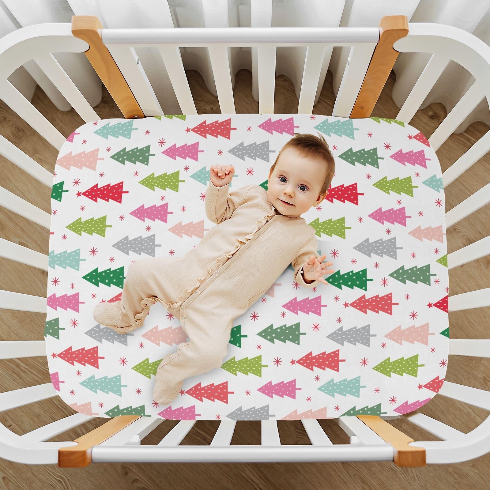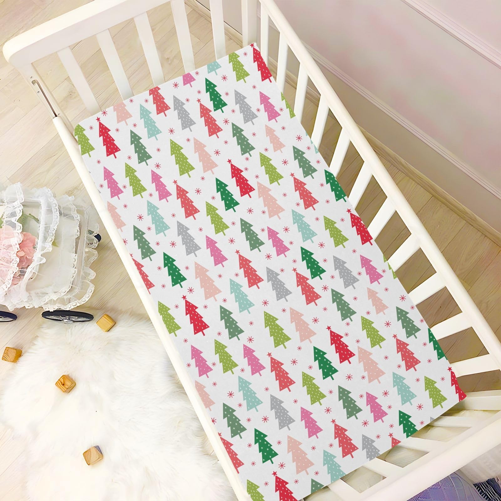 Colorful Christmas Trees Crib Sheets for Boys Girls - Portable Microfiber Fit...