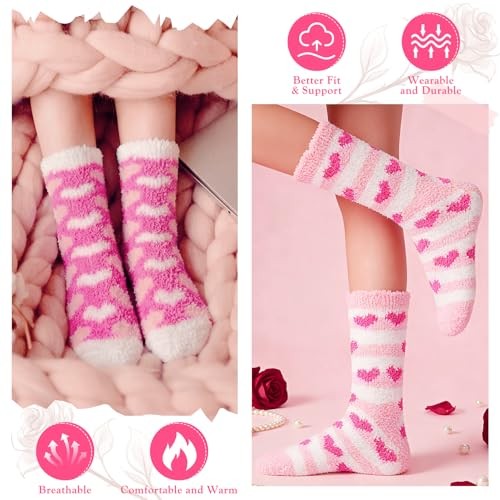 Valentines Day Gifts for Her - 5 Pairs Cozy Fuzzy Socks for Women, Pink Heart