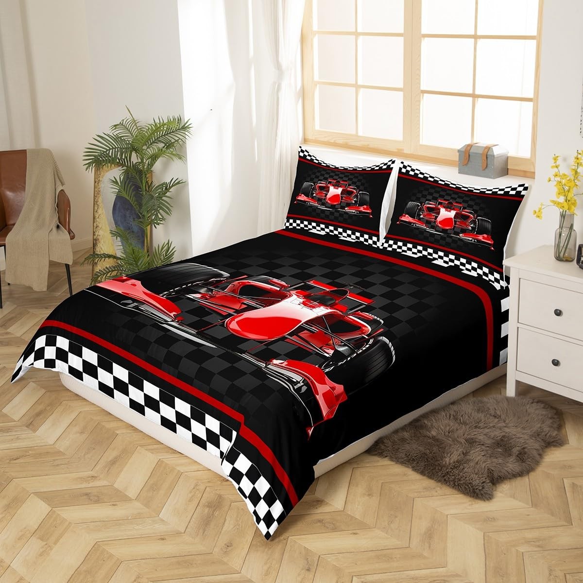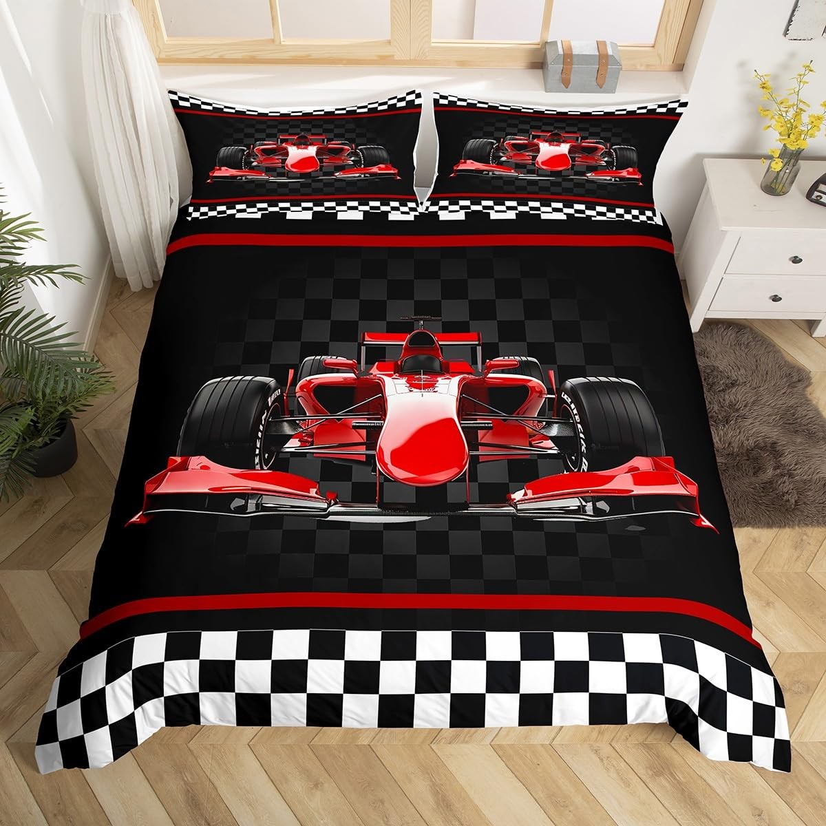 Red Stripes Geometric Grid Plaid Duvet Cover Set Not Comforter King Size,Ex...