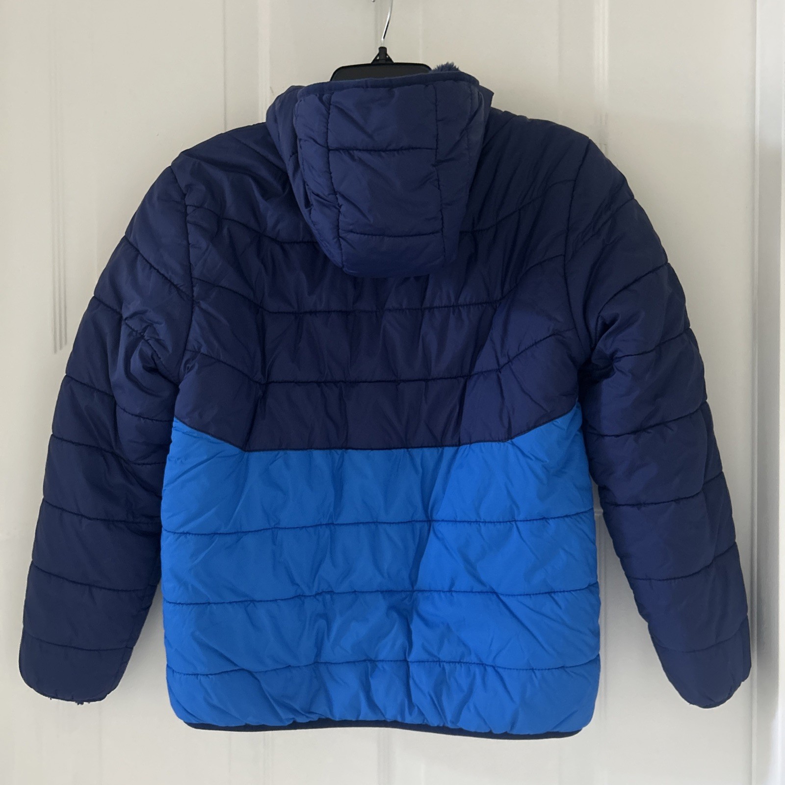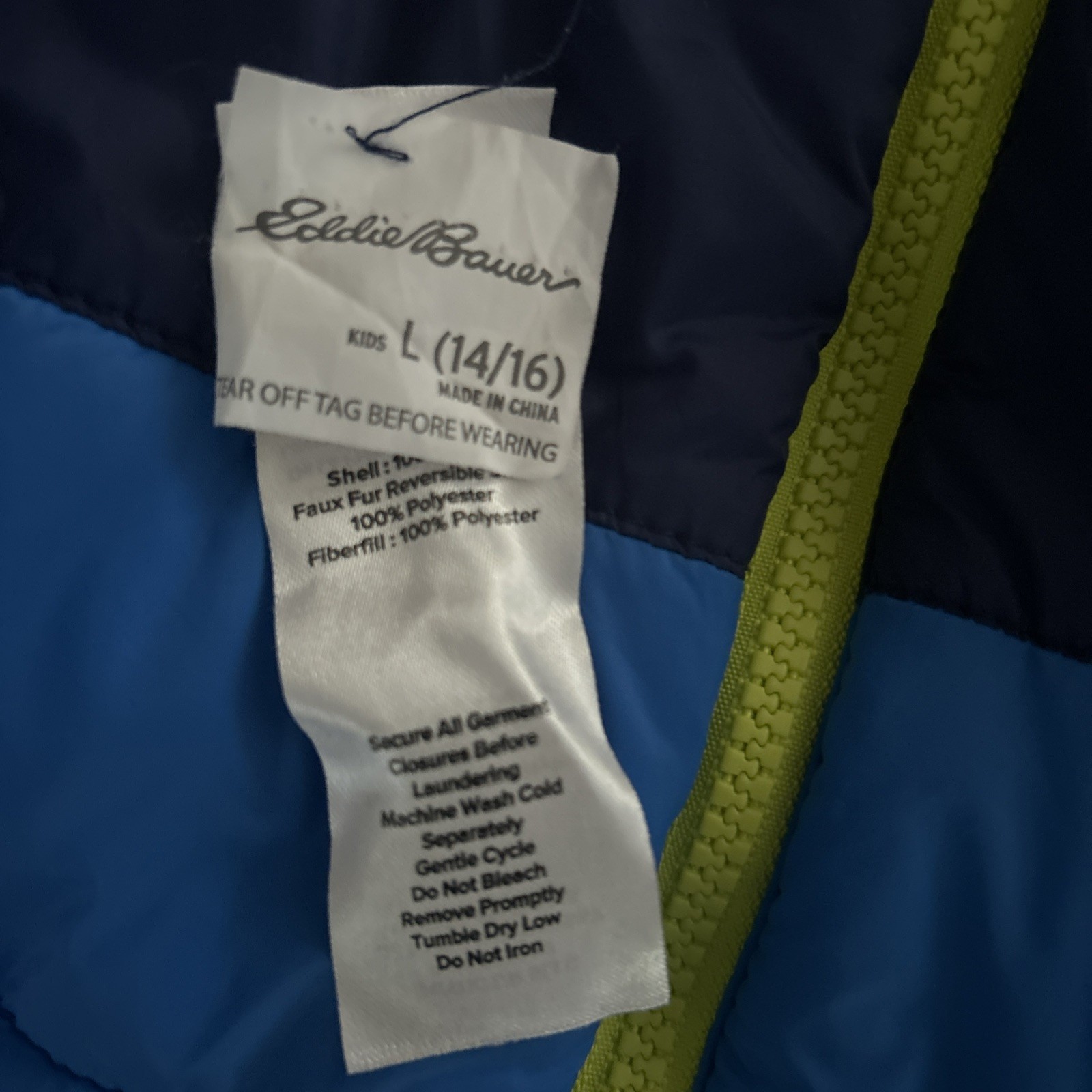 как выглядит Eddie Bauer Reversible Blue Full Zip Puffer Hooded Jacket Fleece L 14/16 фото