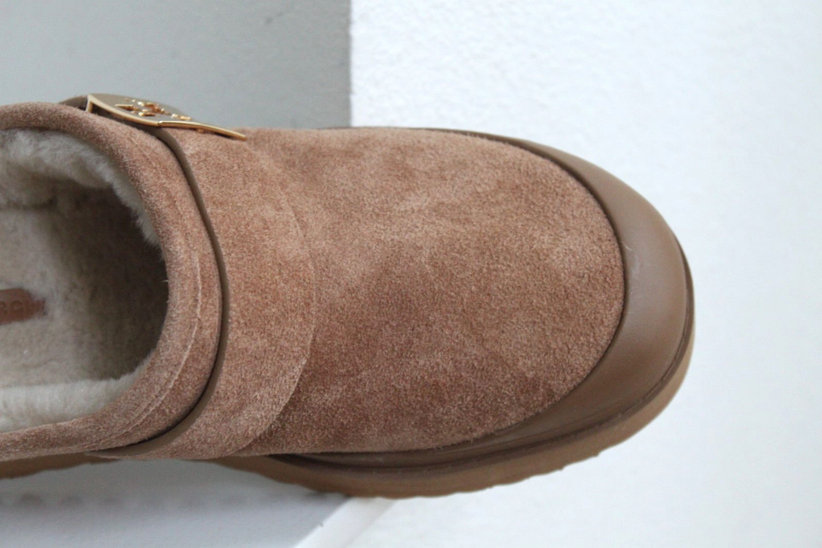 как выглядит sz 8.5 Tory Burch Genuine Shearling Chestnut Platform Logo Mule Slip on Shoes фото
