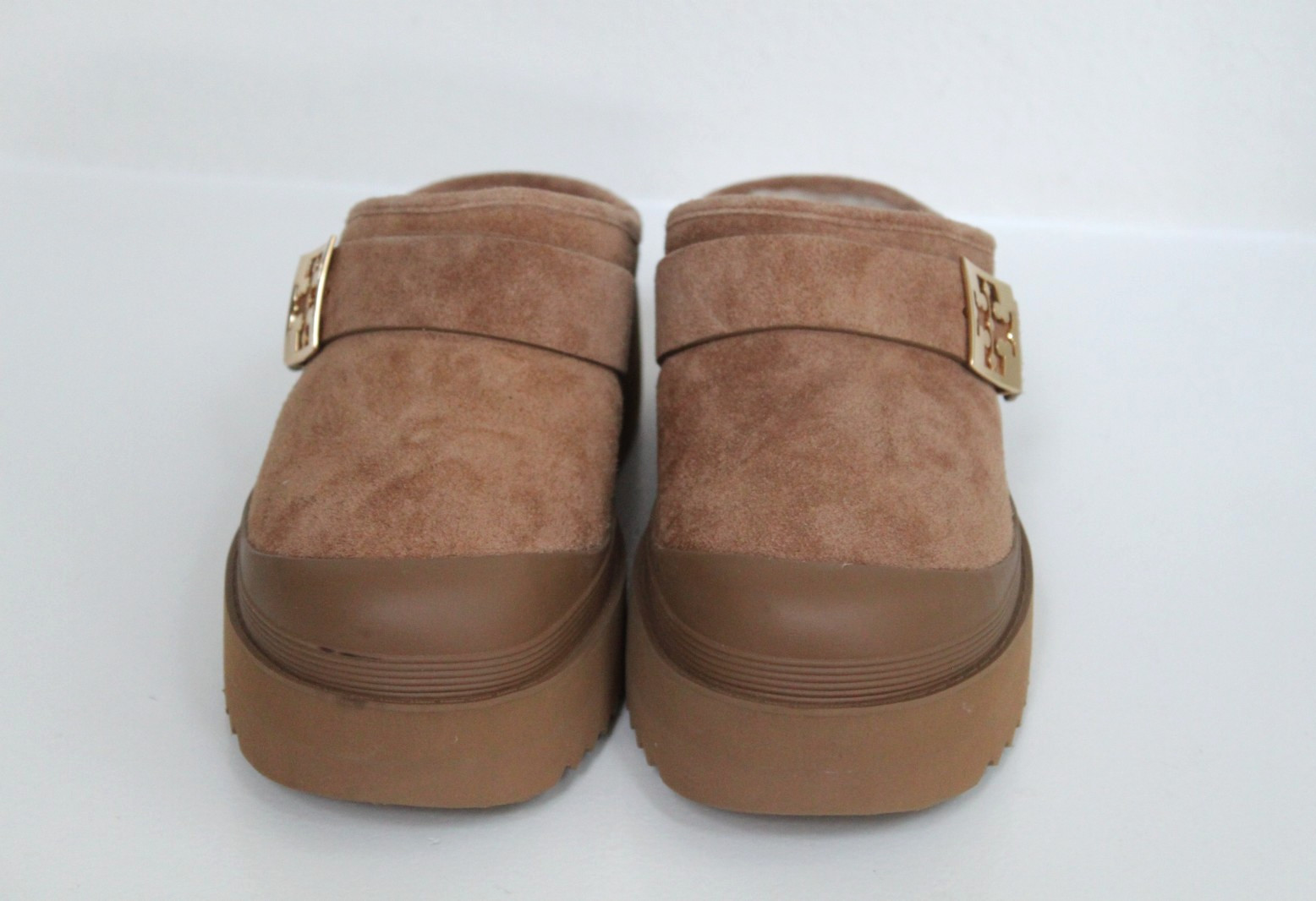 sz 8.5 Tory Burch Genuine Shearling Chestnut Platform Logo Mule Slip on Shoes