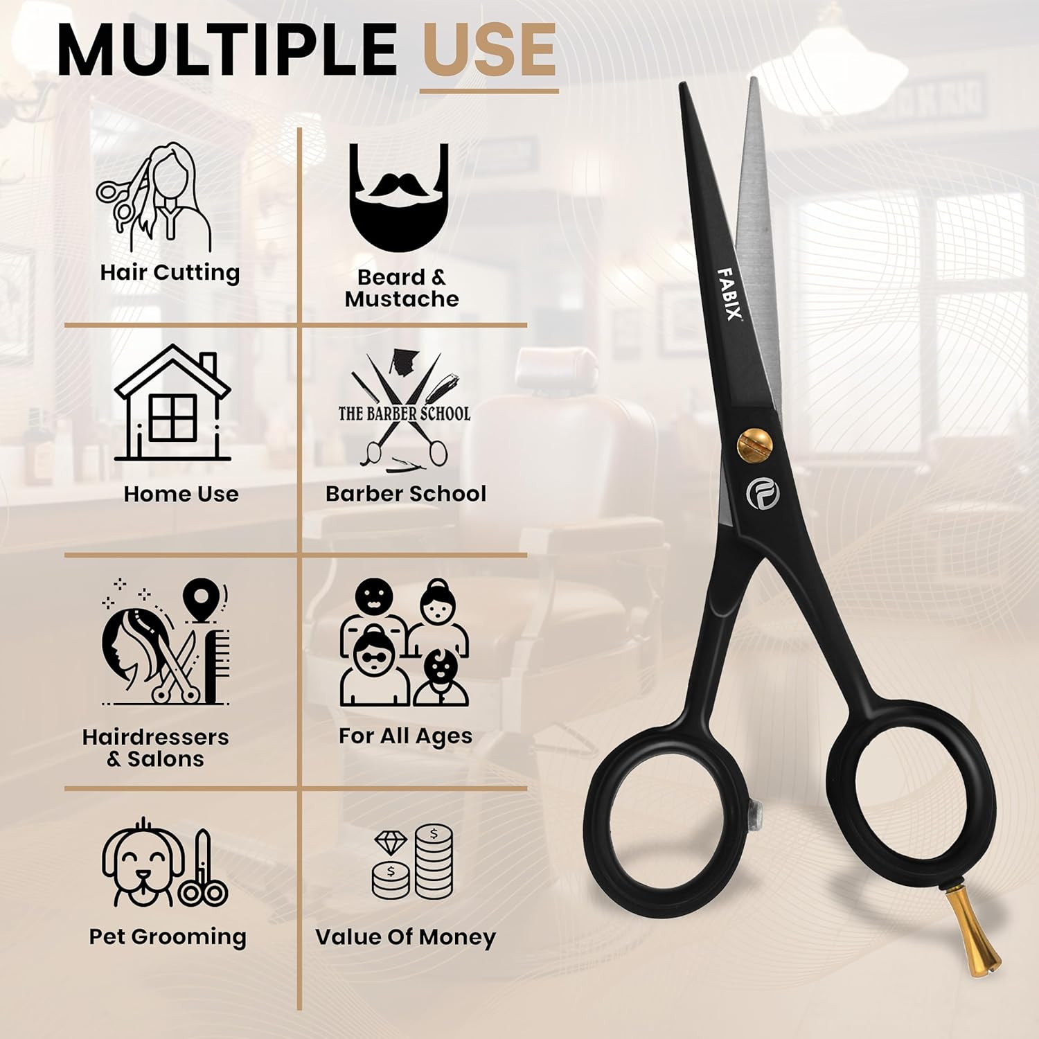 5 Professional Beard Mustache Scissors with 1 Beard Comb, 1 Mustache Comb and T