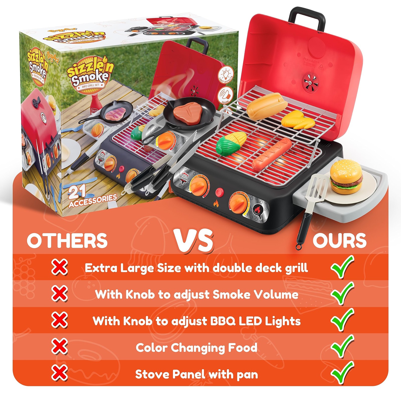 Included Components: Tabletop Grill Set,Play Food, Kitchen Utensils Set