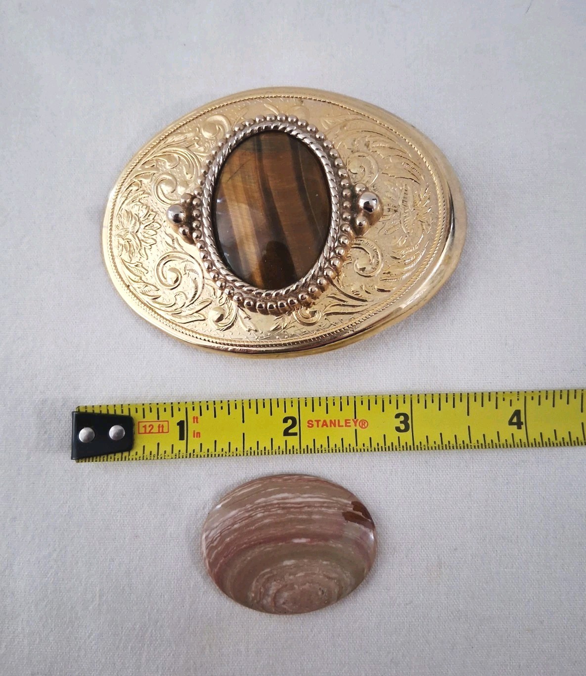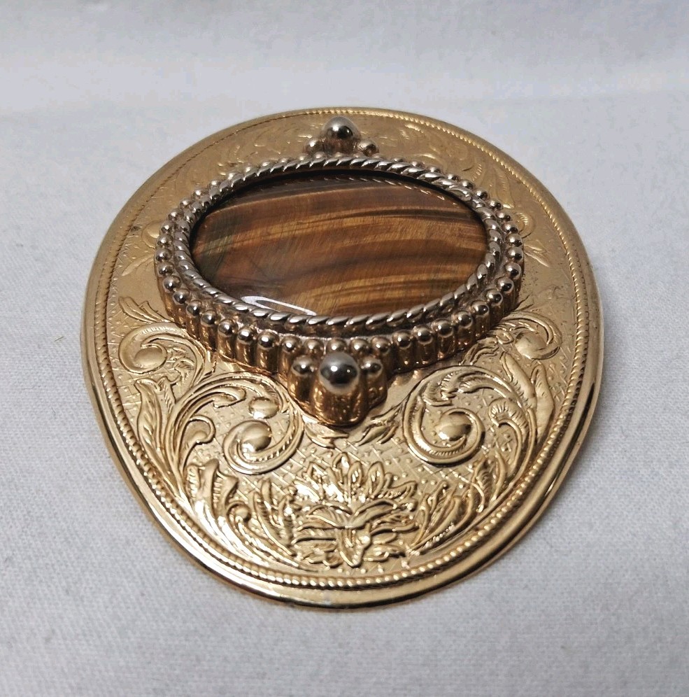 как выглядит Vintage Western Style Gold Tone Oval Belt Buckle Polished Stone Cabochon фото
